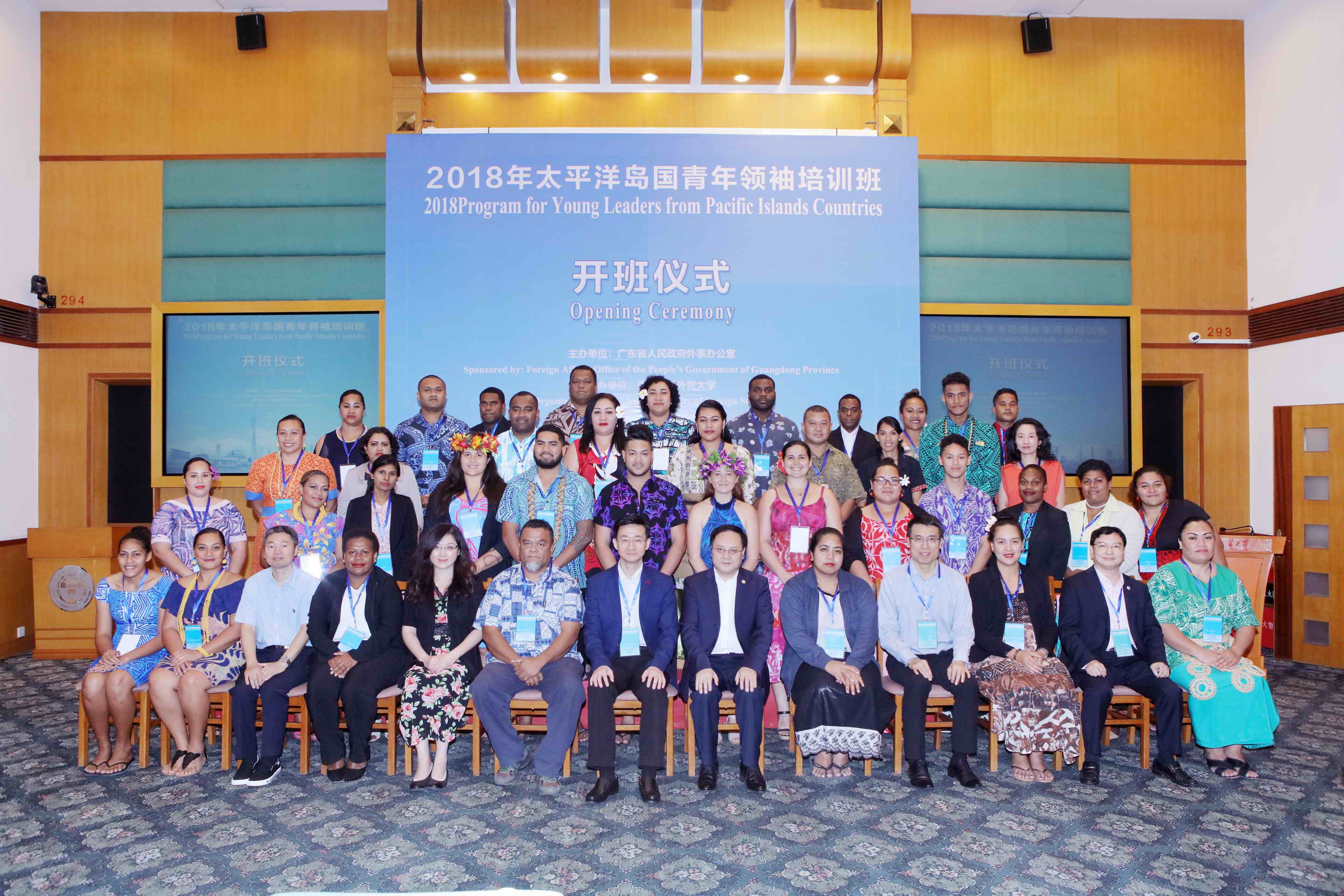 本网讯 10月15日下午,太平洋岛国青年领袖培训班开班仪式在我校北校区国际会议厅召开,广东省人民政府外事办公室副主任仓峰、我校校长石佑启等致辞。来自库克群岛、斐济、密克罗尼西亚、纽埃、萨摩亚、汤加、瓦努阿图等7国的38名学员出席活动。