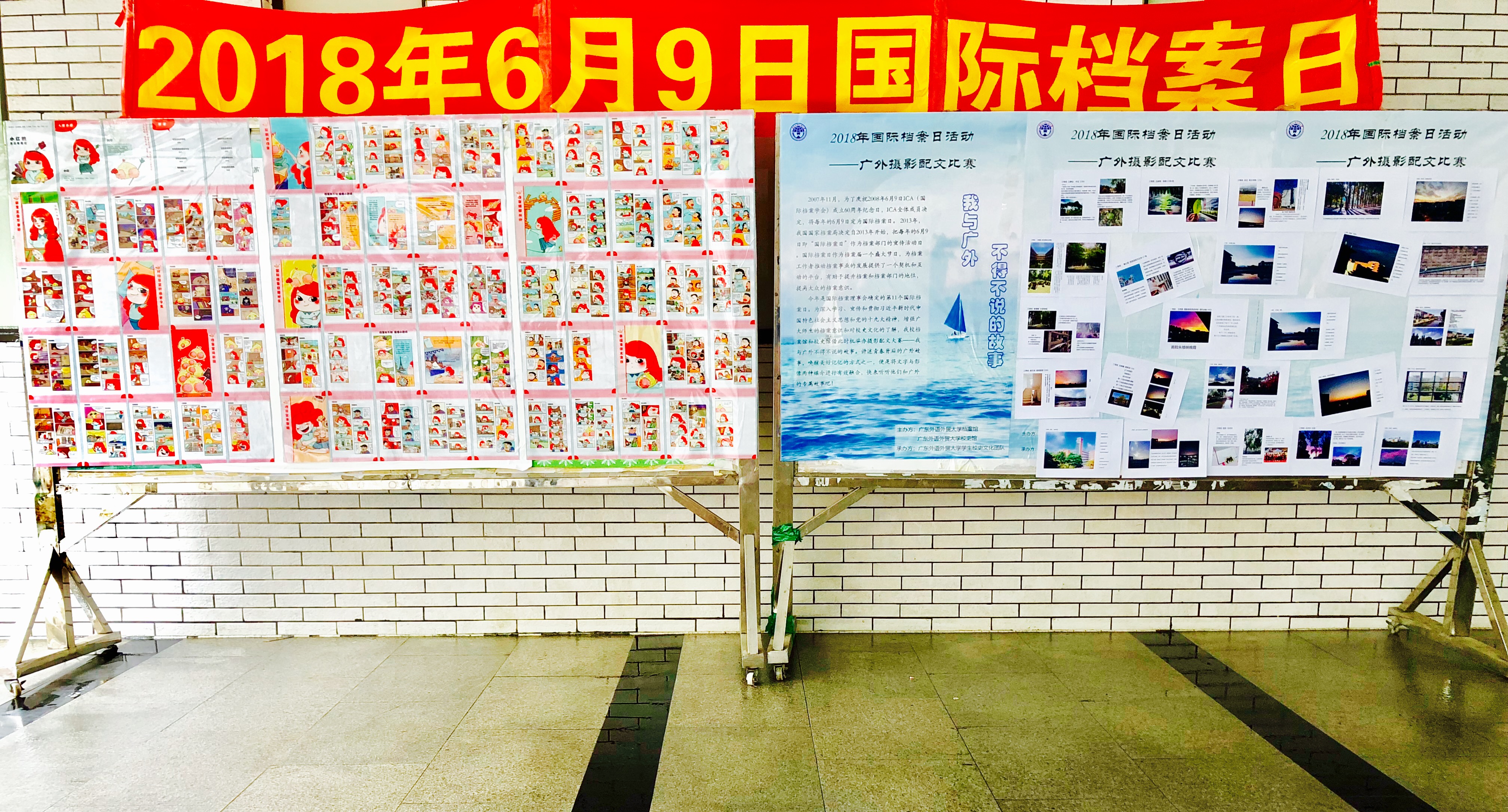 此次摄影配文比赛面向我校全体师生和校友,以校史馆微信公众号为依托,线上投稿与线下展览相结合。参赛作品线上征集时间为5月15-30日,优秀作品经网络匿名投票和专家评审胜出。6月8-17日获奖作品同时在南北校进行线上和线下展出。同期展出的还有中国档案局编纂的《2018年6月9日国际档案日宣传漫画册< 小红的兰台奇遇记>》故事海报。海报通过有趣的漫画形式,以主人翁小红的遭遇为线索,讲述了档案工作的内容和重要意义。
