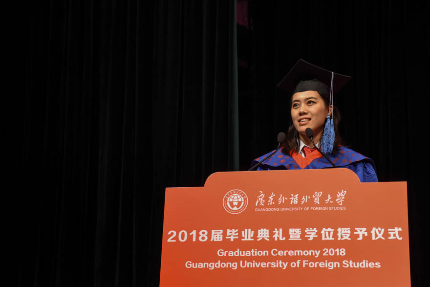 编者按 骊歌初动,韶光匆匆;毋忘所训,薪火相传。在今年的毕业典礼上,来自各行各业的校友代表回到广外,为学弟学妹们送上殷殷寄语,期待他们不忘初心,行实致远;祝福他们一路坦途,收获自己的精彩人生。在2018届毕业生即将告别母校之际,广外新闻网特别推出“校友寄语”报道,按照典礼场次顺序,与大家分享校友代表在2018届毕业典礼上的致辞。