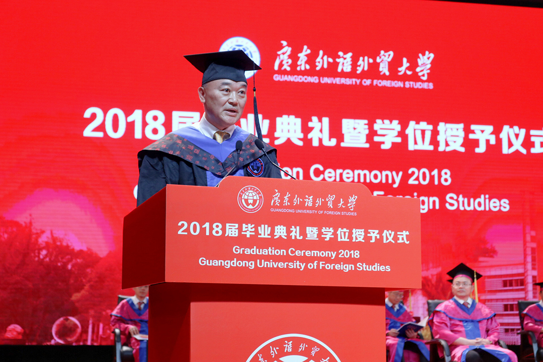 我希望你们走向社会时,可以特别坦然又骄傲地说,我们不曾枉为广外人。从青年到暮年,我们都不曾远离这所大学教我们的初心。