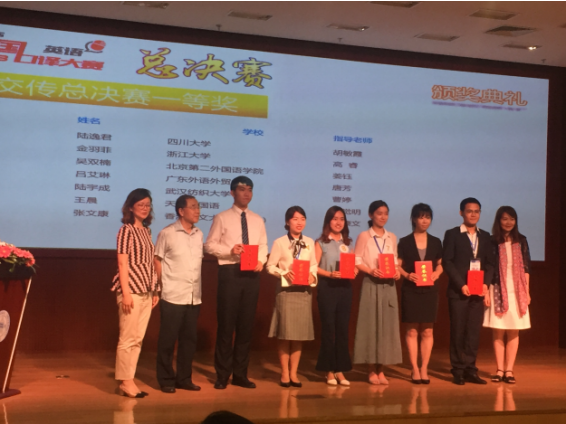 本网讯 6月24日,第七届全国口译大赛(英语)全国总决赛在北京师范大学落下帷幕。我校翻译学院国际会议证书班学子吕艾琳获得全国口译大赛交传总决赛一等奖,我校老师唐芳获得“优秀指导教师”奖。