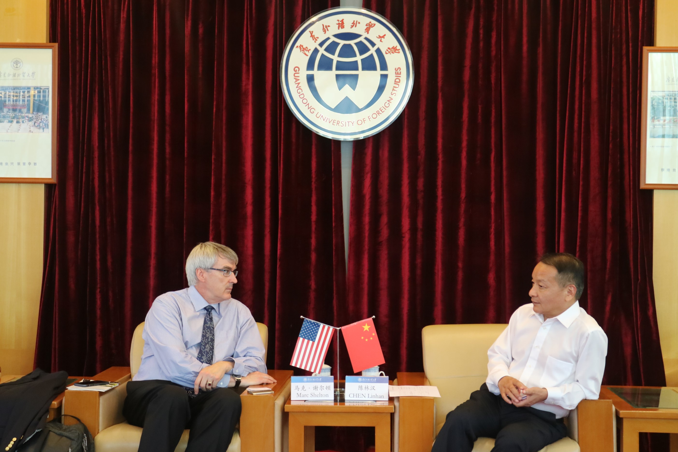 本网讯 6月26日,美国乔治福克斯大学教育学院院长马克·谢尔顿(Marc Shelton)来访我校,副校长陈林汉在北校区迎宾厅会见来宾,双方就两校合作事宜进行洽谈。