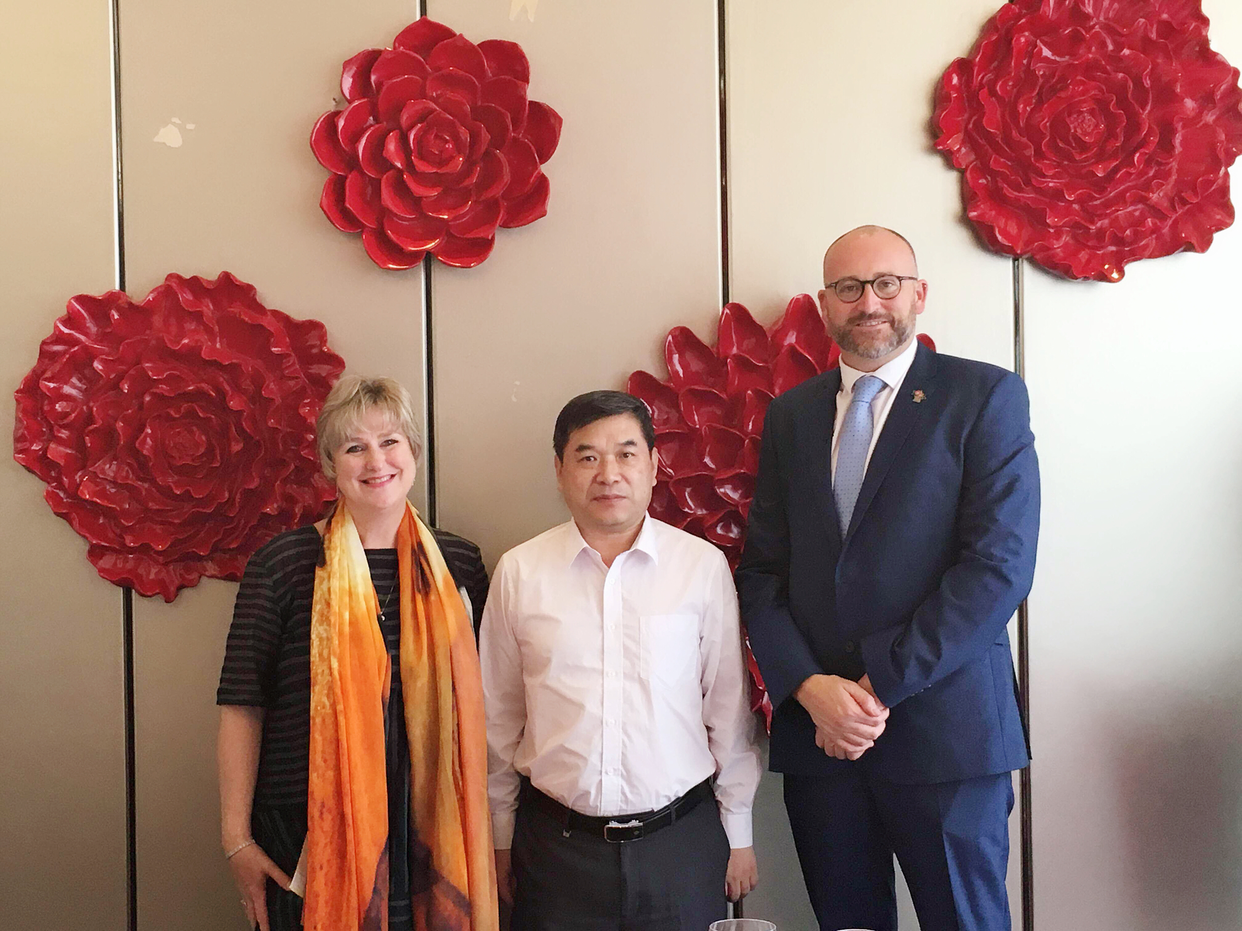 又讯 我校副校长焦方太在结业典礼前会见了Liz Bromley一行,并就两校现有合作项目的开展情况进行交流,并就如何开拓两校新的合作领域,拓宽合作的深度和广度进行了探讨。陪同会见的还有国际合作交流处处长蔡红及国际学院副院长(主持工作)魏辉良。