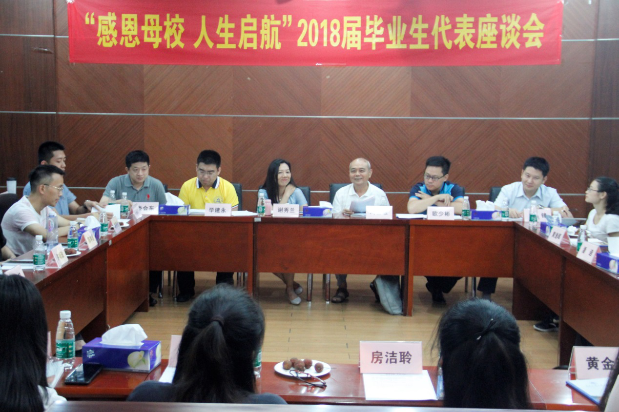 本网讯 6月27日,“感恩母校 人生启航”2018届毕业生代表座谈会在北校区第六教学楼104会议室召开。近30位2018届毕业生代表,关工委主任冯益谦,学生就业指导中心、校团委、校友总会有关负责人参加了座谈会。座谈会由学生就业指导中心主办。