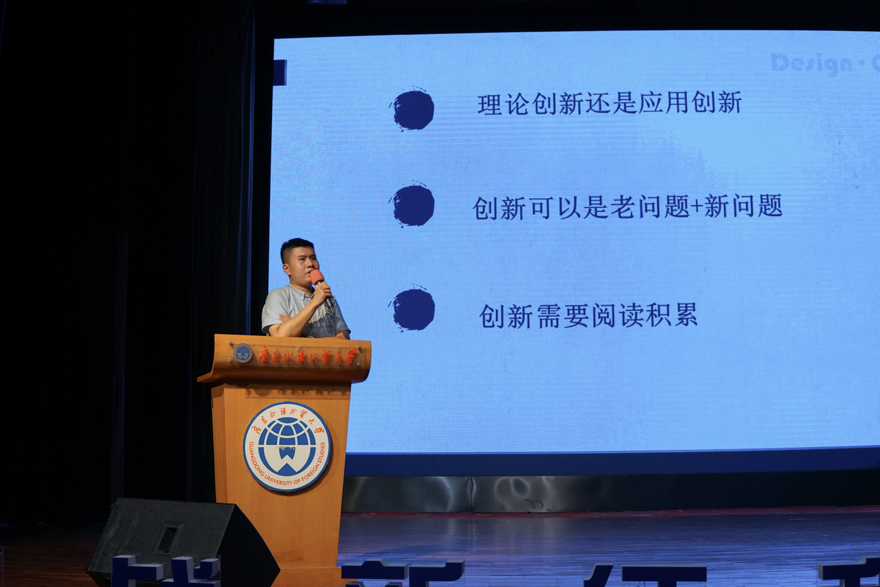本网讯 6月14 日下午,2018年“挑战杯”广外大学生课外学术科技作品竞赛启动仪式暨专题培训讲座在南校区B8学术报告厅举行。省社会科学院新闻学研究员刘飚出席活动,介绍了比赛的规则和要求。现场还设置了优秀代表经验分享环节。