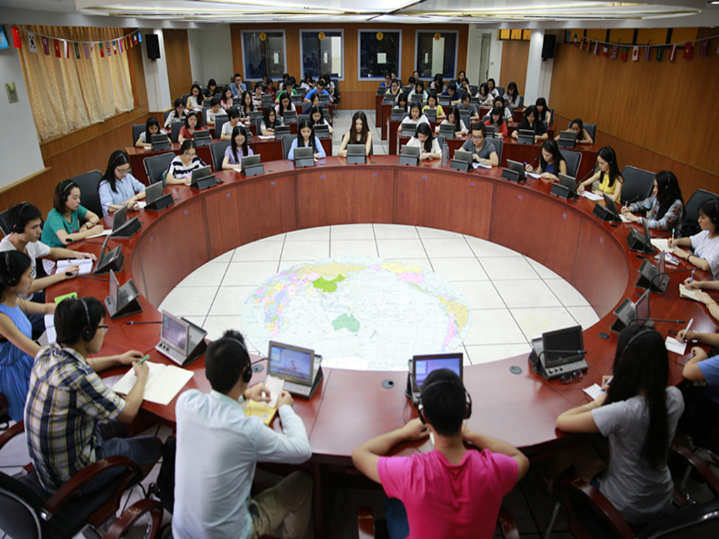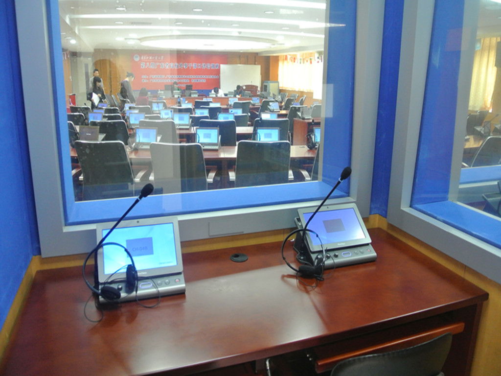 为了培养以知识和能力为本、符合社会需要的复合型外语高级人才的教学需要,我校于2005年建成了同声传译会议实验室,2013年实现系统更新升级。实验室集教学和会议功能于一体,是我校国家级同声传译实验室教学示范中心的重要组成。