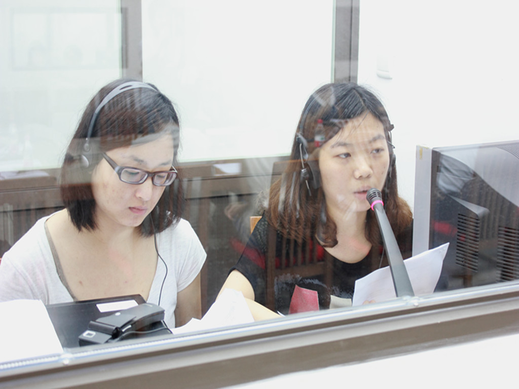 北校区语言实验室主要服务于我校外国语言文学方向的教育、教学、实训、教改和科学研究,并具备相关领域的社会服务功能。外语学习离不开翻译,因此我校致力于修建高水平翻译类实验室,其主要包括翻译机创新实验室和同声传译会议实验室。