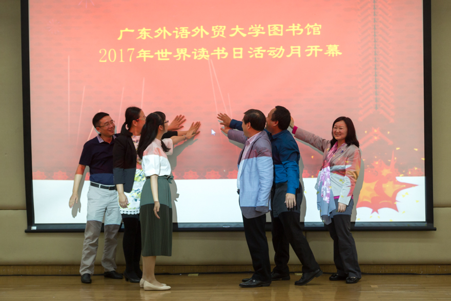 本网讯 为营造大学校园浓厚的读书氛围,构建“积极向上、清新高雅、健康文明”的校园读书文化,创设一个具有浓郁文化气息的“书香校园”,4月27日下午,2017广东外语外贸大学图书馆“世界读书日”活动月开幕式暨悦读讲堂在我校北校区图书馆报告厅举行。副校长焦方太、图书馆馆长孔晓明、图书馆党总支书记范静静,校党委宣传部、学生工作处等相关部处代表出席开幕式。