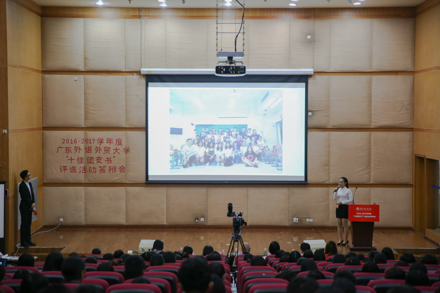 本网讯 4月23日,为调动基层团支部活力,2016-2017年度“十佳团支书”评选答辩会在我校南校区图书馆报告厅举行。从评议组初审和微信公众投票筛选中脱颖而出的15名候选人参与角逐,最终李桂晓、陈紫荷、周卓靖等10位同学获评校“十佳团支书”称号。