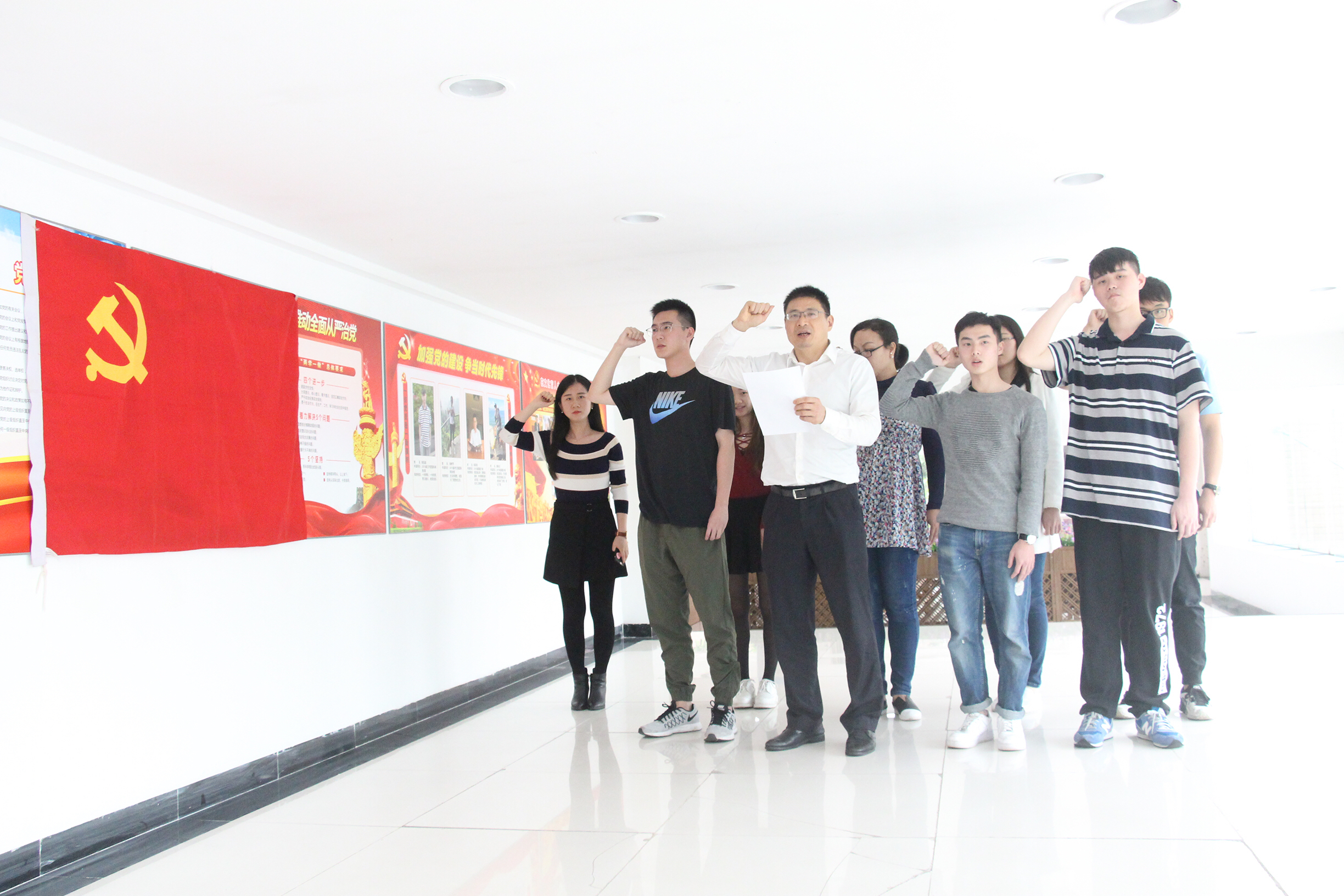 在仪式教育环节,学院党员同志面对党旗庄严宣誓,共同铭记这光荣的一刻,牢牢将入党誓词植入心底,并作为自己的“航标”,做到坚定政治方向,一心向党,永远跟党走。