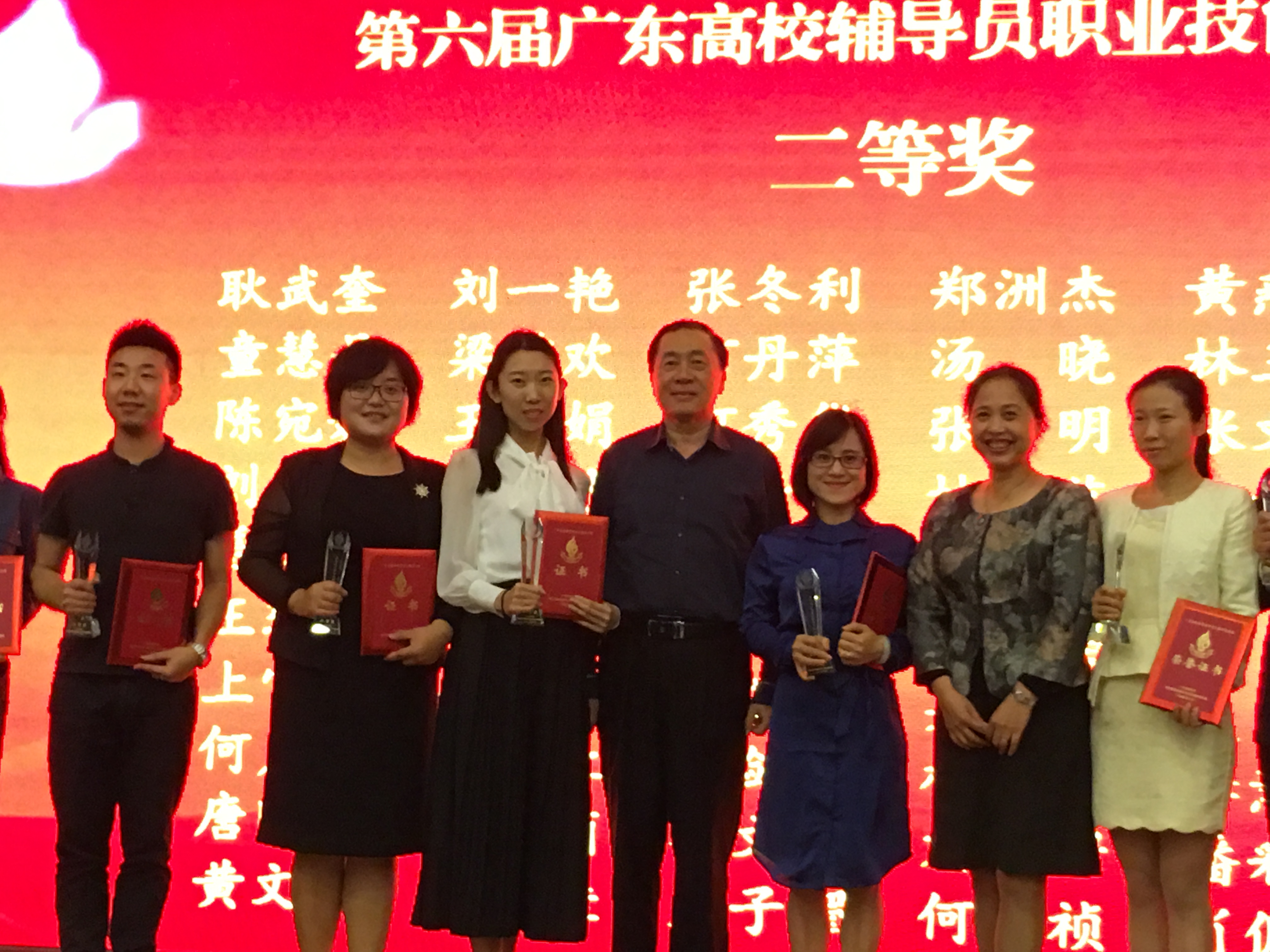 本网讯 4月6日至9日,在北京师范大学珠海分校举办的第六届广东高校辅导员职业能力大赛中,我校法学院辅导员陈宇获省第六届辅导员职业能力大赛一等奖,信息学院辅导员张文萃、商学院辅导员尚丹获二等奖,创我校历年参赛最好成绩。