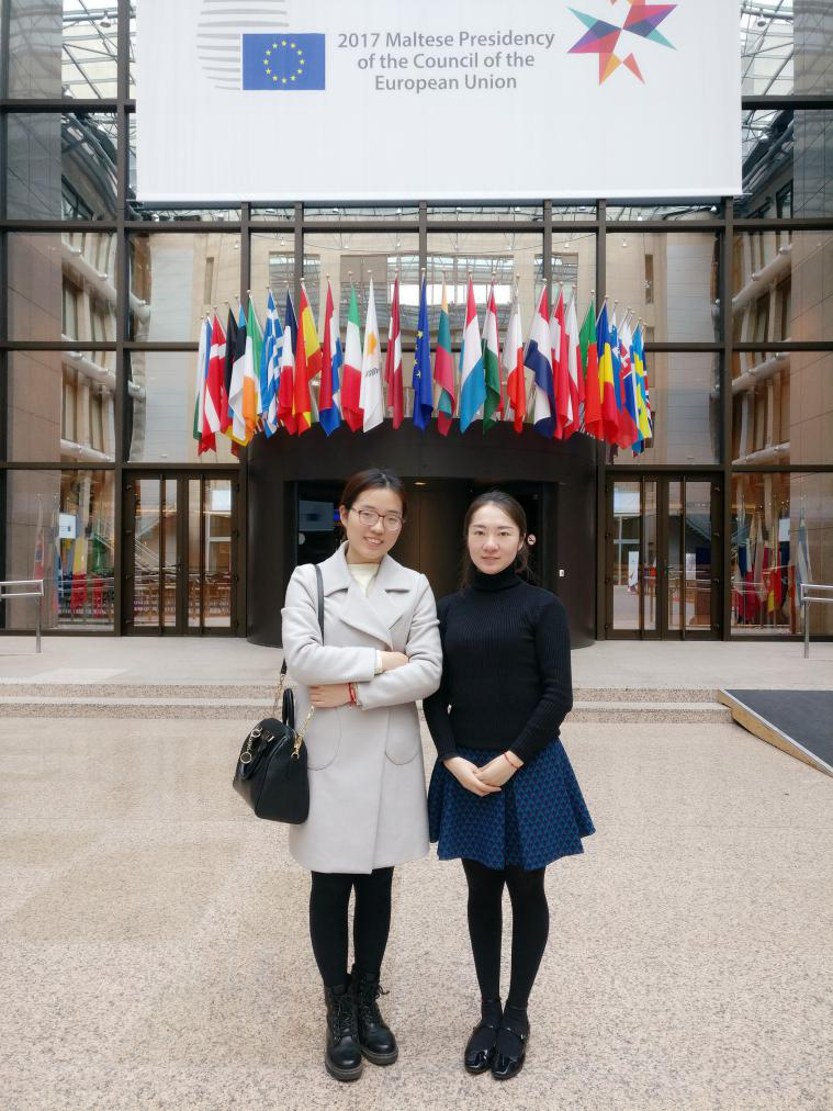 本网讯 4月3日至7日,我校国际会议传译证书班2015级学员傅艾、程霞在欧盟委员会口译总司进行专业实习。这是我校第二次派国际会议传译证书班学员到欧盟口译总司实习。实习期间,欧盟口译总司安排学员进入欧洲议会、欧盟委员会、欧盟委员会口译总司合作大学年会(SCIC Universities Conference)等多场会议,在现场同传厢内开展实训。