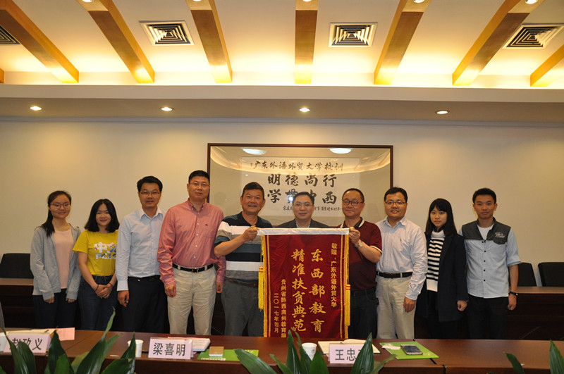 梁喜明谈到,2014年7月以来,广外多次选派专家专题辅导、举办“春雨工程”农村英语教师能力提升班等,为黔西南州培养了一批英语教学骨干教师,提高了英语教学质量,期待我校加大对黔西南精准扶贫的力度,携手共谱新篇。