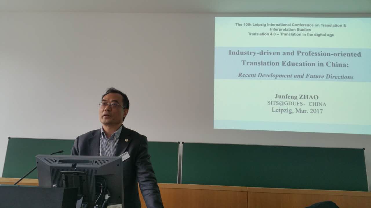 本网讯 3月12日至16日,第十届莱比锡国际翻译研讨会在世界名校德国莱比锡大学举行。会议的主题是“Translation 4.0:T & I in the digital age”,来自全球的120多位学者参加了此次盛会。世界翻译教育联盟(WITTA)秘书长、我校翻译学院院长赵军峰应莱比锡大学卡斯滕·辛纳教授(Prof. Dr. Carsten Sinner)的邀请出席大会,作“中国翻译教育的现状和展望”的演讲,并向与会代表介绍了“世界翻译教育联盟”宗旨和规划。