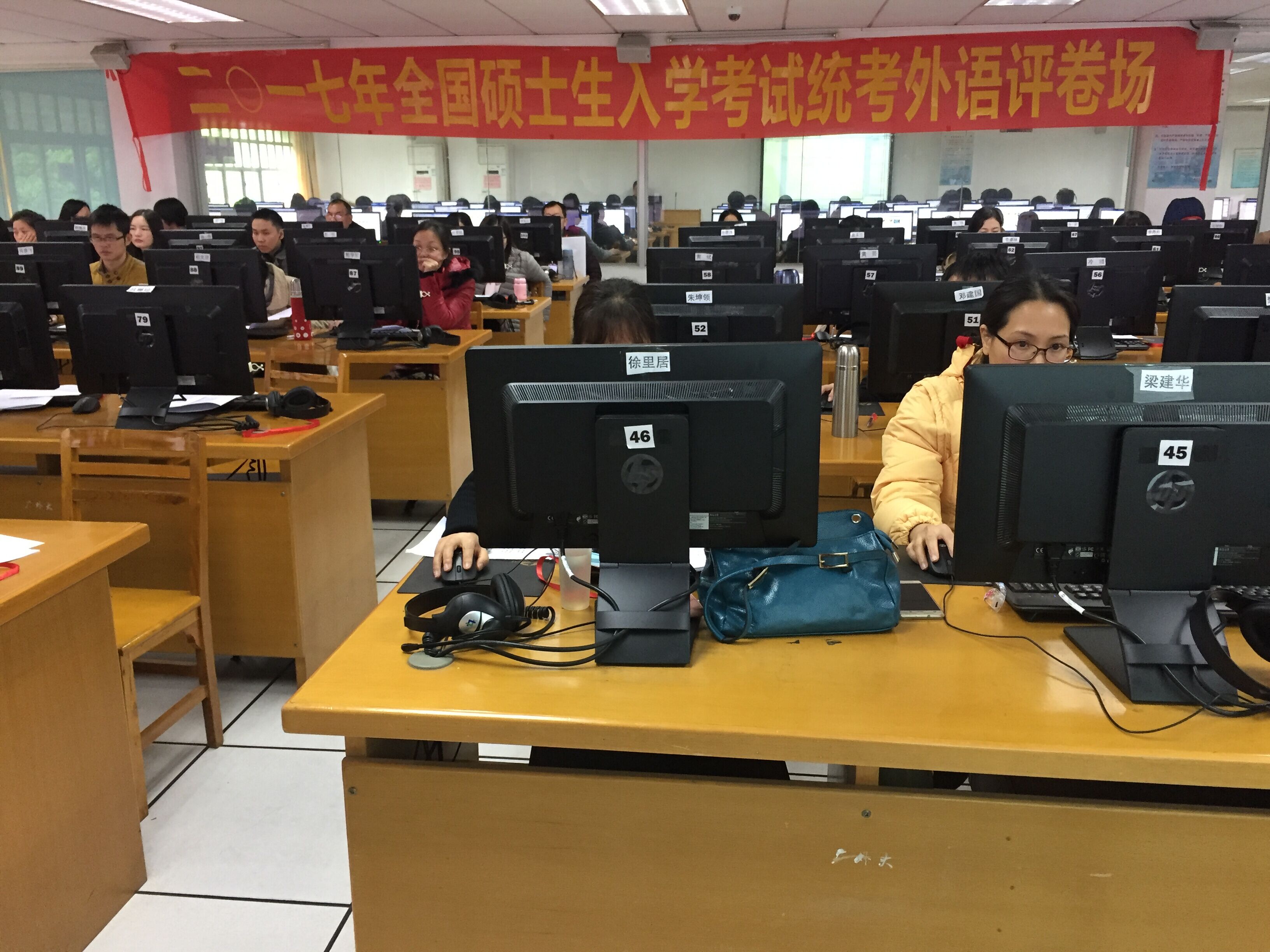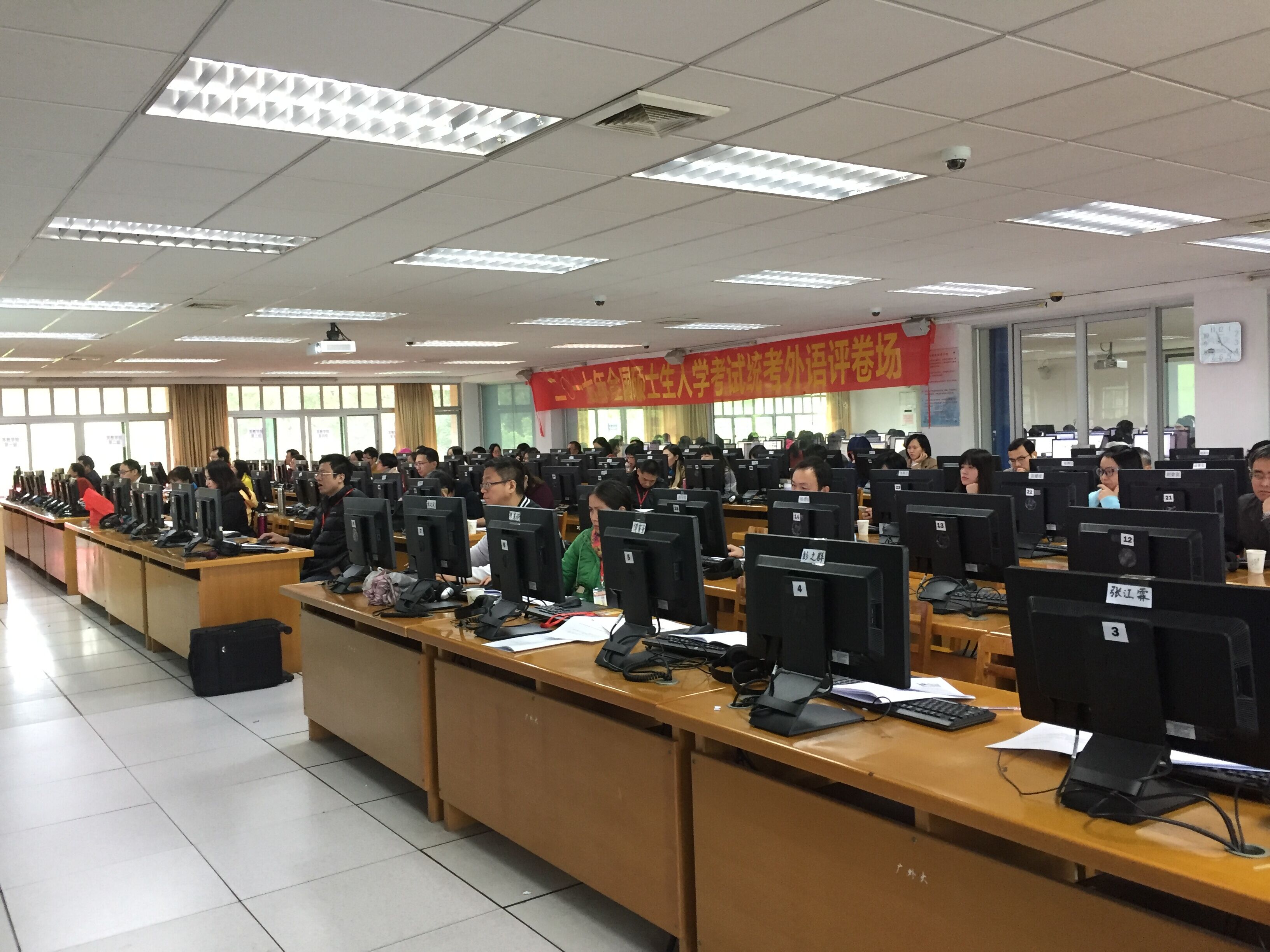 本网讯 1月13至16日,广东省2017年全国硕士研究生统一入学考试外语试卷和我校自命题试卷评卷工作在我校教育技术中心进行,由600多名教师组成的评卷队伍评阅试卷共计24万多份,全部评卷工作于16日圆满结束。