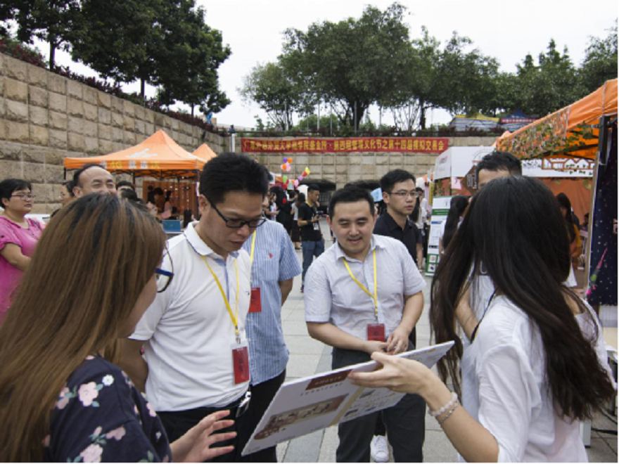 本网讯 5月19日,商学院举办的“盛金所”第四届管理文化节第14届模拟交易会现场交易活动在南校区下沉式广场举行,来自大学城十所高校的800多人参加了活动。在教育部大力推进高等学校创新创业教育和大学生自主创业工作的背景下,此次模拟交易会有助于拓宽同学们创新创业视野,搭建大学生创新创业实践平台,让更多出色的模拟项目成为真实项目,让更多同学将专业知识和英语学习运用于实践中,以达到学以致用的目标。