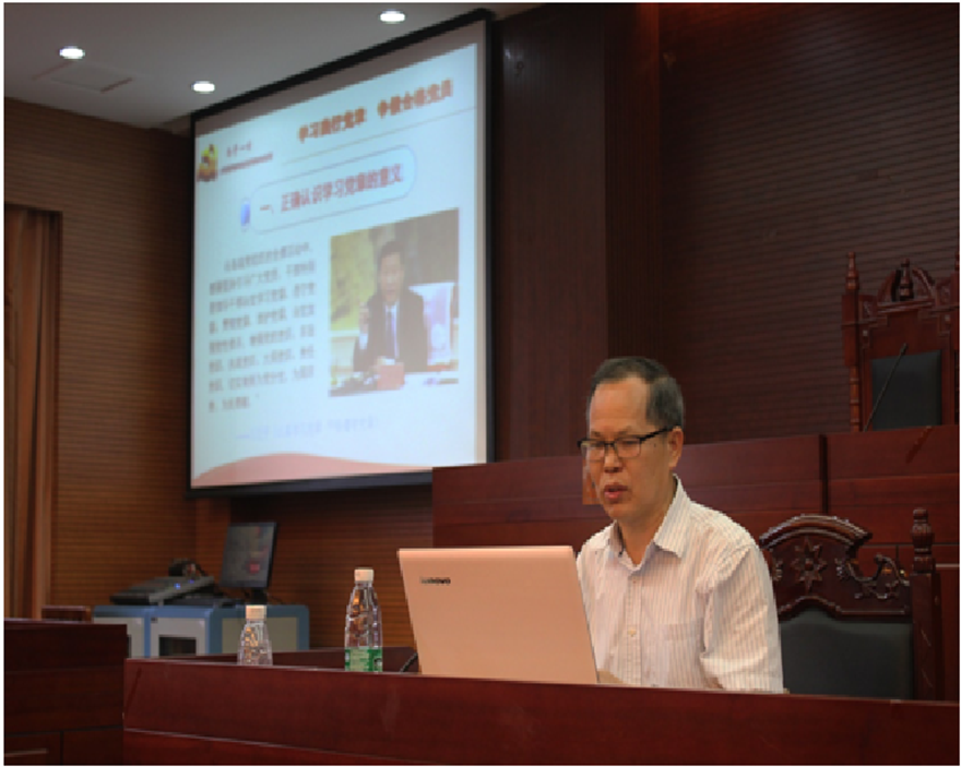 本网讯 5月19日,我校特聘组织员邱月生在南校实验楼为法学院学生党员做了“学习践行党章,争做合格党员”的专题辅导讲座。法学院党委书记周秀娇、副书记林茂辉以及法学院学生党员和发展对象等参加了讲座。讲座由周秀娇主持。