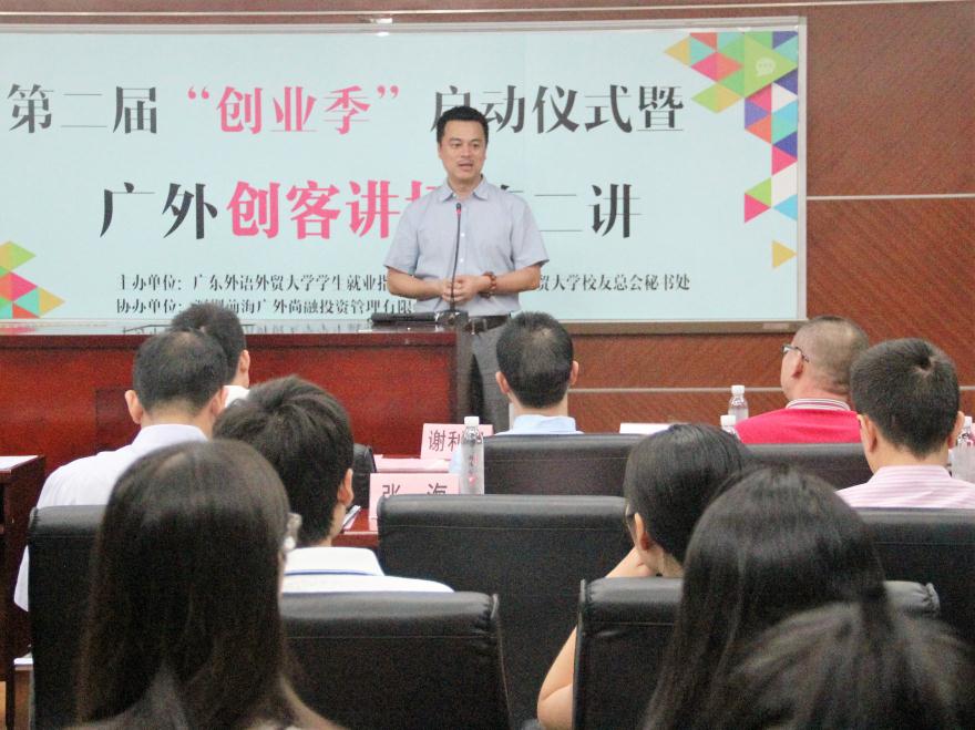 尚融投资管理有限公司投资决策委员会主任委员林陶介绍了广外尚融投资管理有限公司。广外尚融是经我校批准,于2015年成立的投资管理有限公司。依托广外教育平台,立足庞大的校友资源,拥有丰富的优质投资项目,为境内外上市各个时期的企业进行全方位的投资服务,为社会人士尤其是广外校友提供资产管理服务,致力于发展成为世界一流的校友基金。同时部分盈利回馈学校,扶持大学生创业,合作育人。