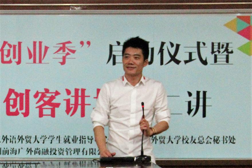 仪式过后的广外创客讲坛上,天使投资人、“网红网”创始人谢利明分享主题为“网红经济”的讲座。离开广外二十年,谢利明表示十分怀念校园。在泛娱乐时代中,他认为广外学子在创业方面有较大发展空间。通过列举同道大叔、王尼玛等网红为例,他认为随着新媒体的发展,网红将逐渐成为广告新的传播主体,而网红的变现能力也将不断增强。他告诉同学们:“扎根于小的领域可能会有更大的发展机会。当你深入了解学习相关和配套领域后,可以应用自己的感情色彩,去创造出自己的自媒体。”他还笑言:“如果创业没有什么方向,可以去当主播,成为网红。”最后,他建议同学们在“创业季”或“毕业季”中,去研究一些领域,并衷心祝愿同学们能在未来的领域有好的发展。