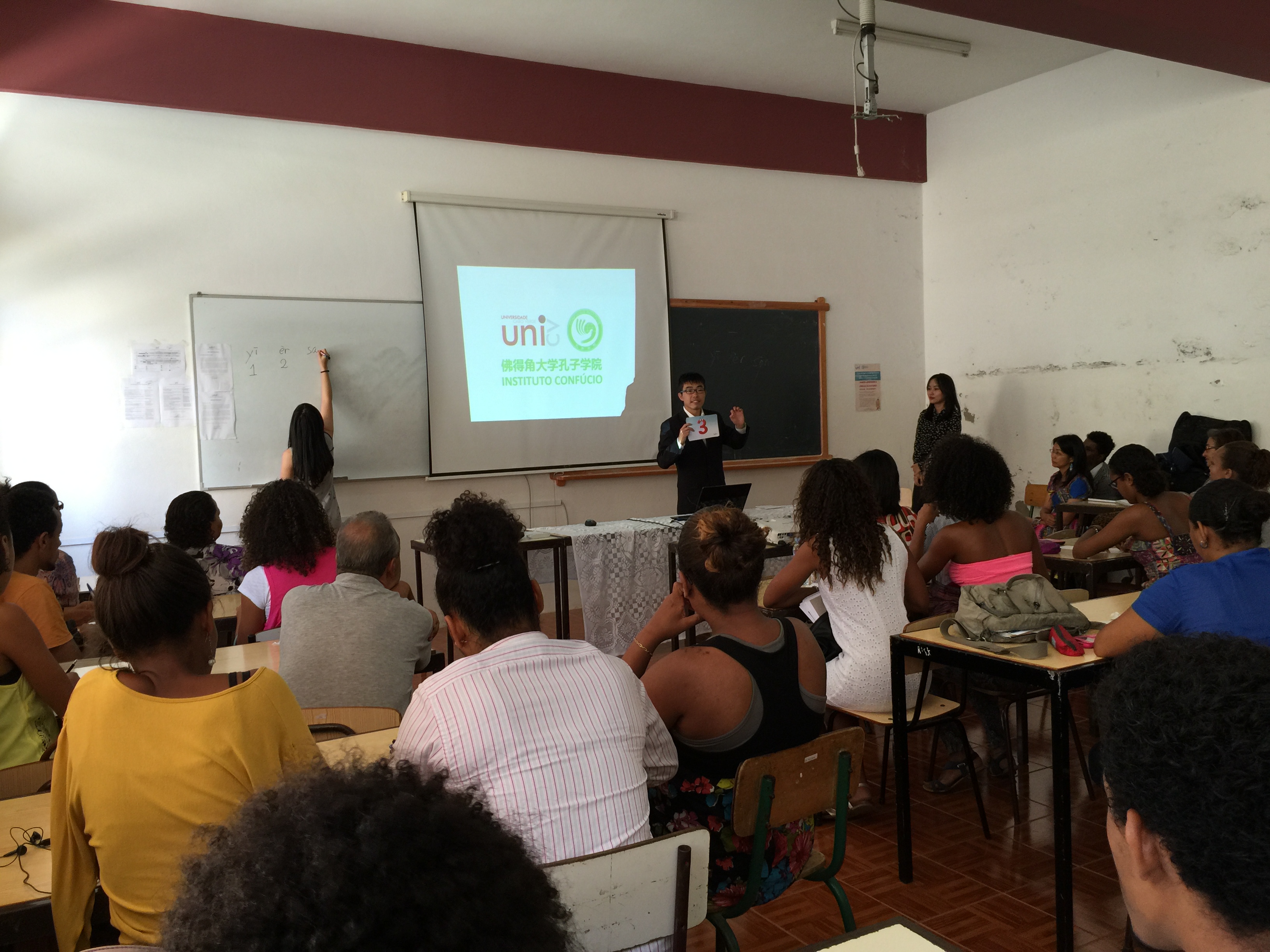 孔子学院在佛得角大学圣文森特分校的首堂汉语公开课取得圆满成功,这次汉语课不仅是一次佛中语言文化交流,也为孔子学院下一步将在圣文森特岛招生开课打下很好的基础。