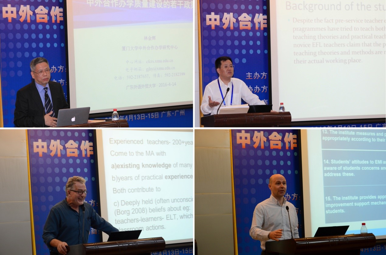 随后,厦门大学林金辉教授、北京师范大学程晓堂教授分别以“中外合作办学质量建设的若干政策动向”、“The Use of Pre-learnedTeaching Methods by Novice EFL Teachers”为题做主旨发言。