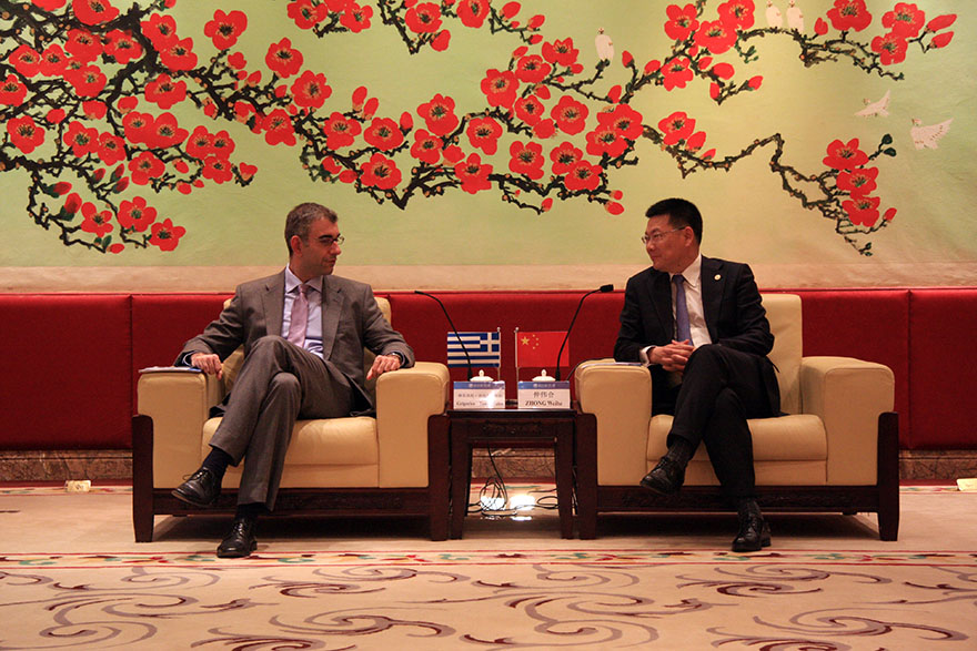 本网讯 3月4日下午,新任希腊驻穗总领事格里高利·塔西奥普洛斯首次来访我校,与我校洽谈希腊语建设合作事宜。我校校长仲伟合于行政楼贵宾厅会见了来宾,一同出席的有副校长方凡泉、国际交流处处长蔡红、西语学院院长杨可、国际交流处副处长吴俊峰以及希腊驻穗领事尼科拉斯·拉米瑞斯和副领事安娜·阿斯兰尼度。