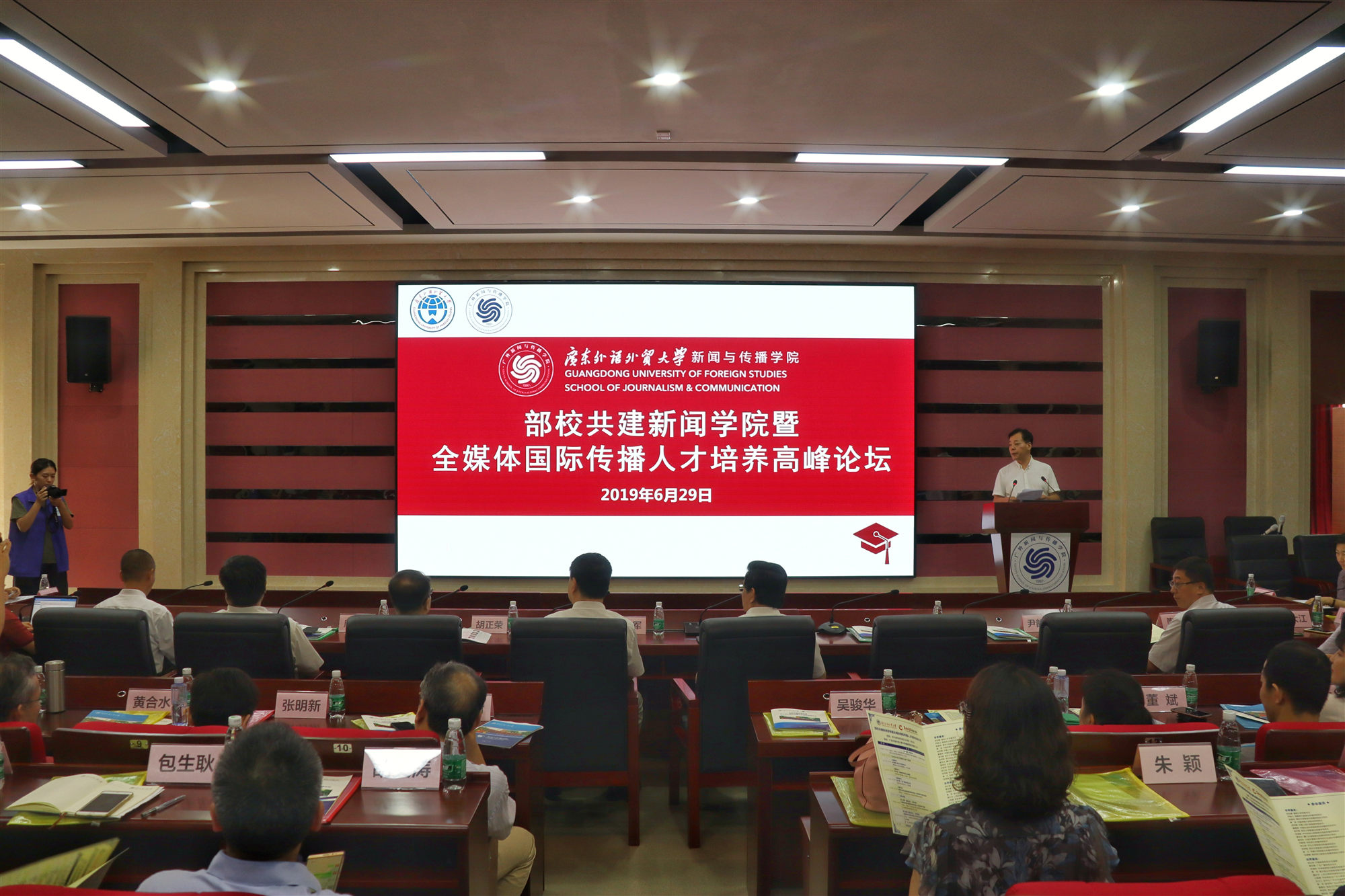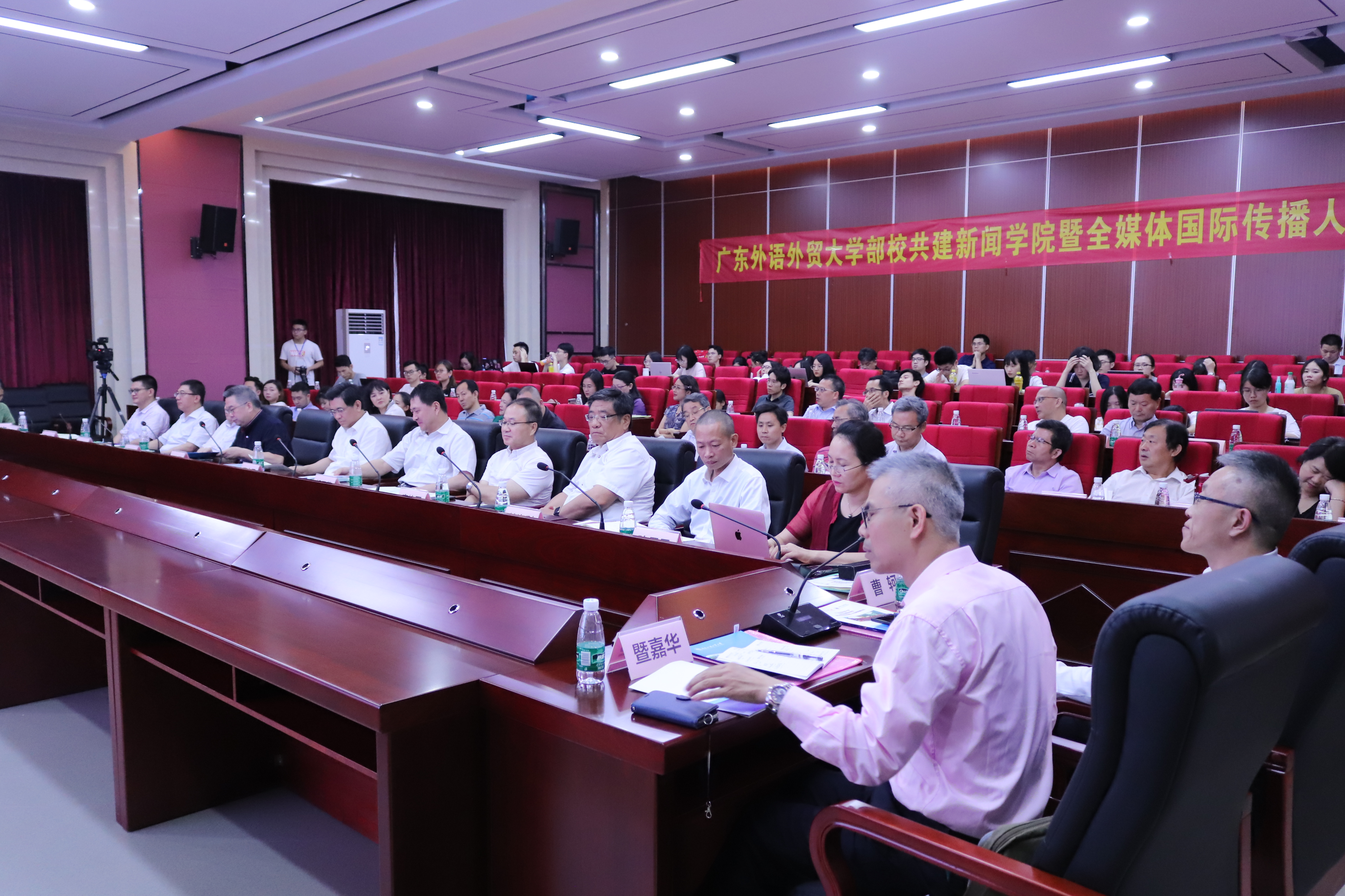 我校新闻学院院长侯迎忠表示,广东省委宣传部2017年9月开始与我校共建新闻与传播学院,并挂牌设立“广东省国际传播青年人才培养基地”。学院从马克思主义新闻观教育、学科建设、师资队伍、人才培养、实习实践、智库建设、党建工作、基础设施、青年人才培养基地等九大方面狠抓落实,取得一定成效。