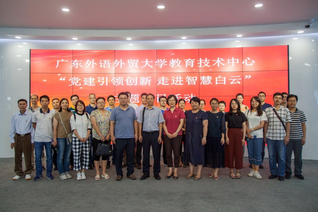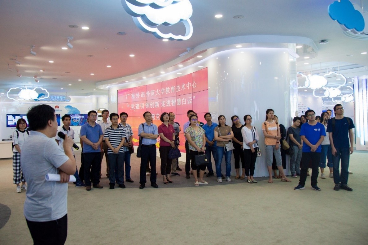 教育技术中心一行参观学习了白云招商服务中心联合华为软件开发云广州创新中心、华为智慧城市/软件开发云展示中心组成的联合展厅,该展厅大量应用新一代信息科技设备,充分展示了白云形象及云产业发展成果。双方交流了日常党建学习和活动开展情况。党员们表示,要以党建引领守初心,智慧思维促发展,立足本职岗位,不断提高业务能力,为广大师生提供优质技术服务,努力打造智慧广外。