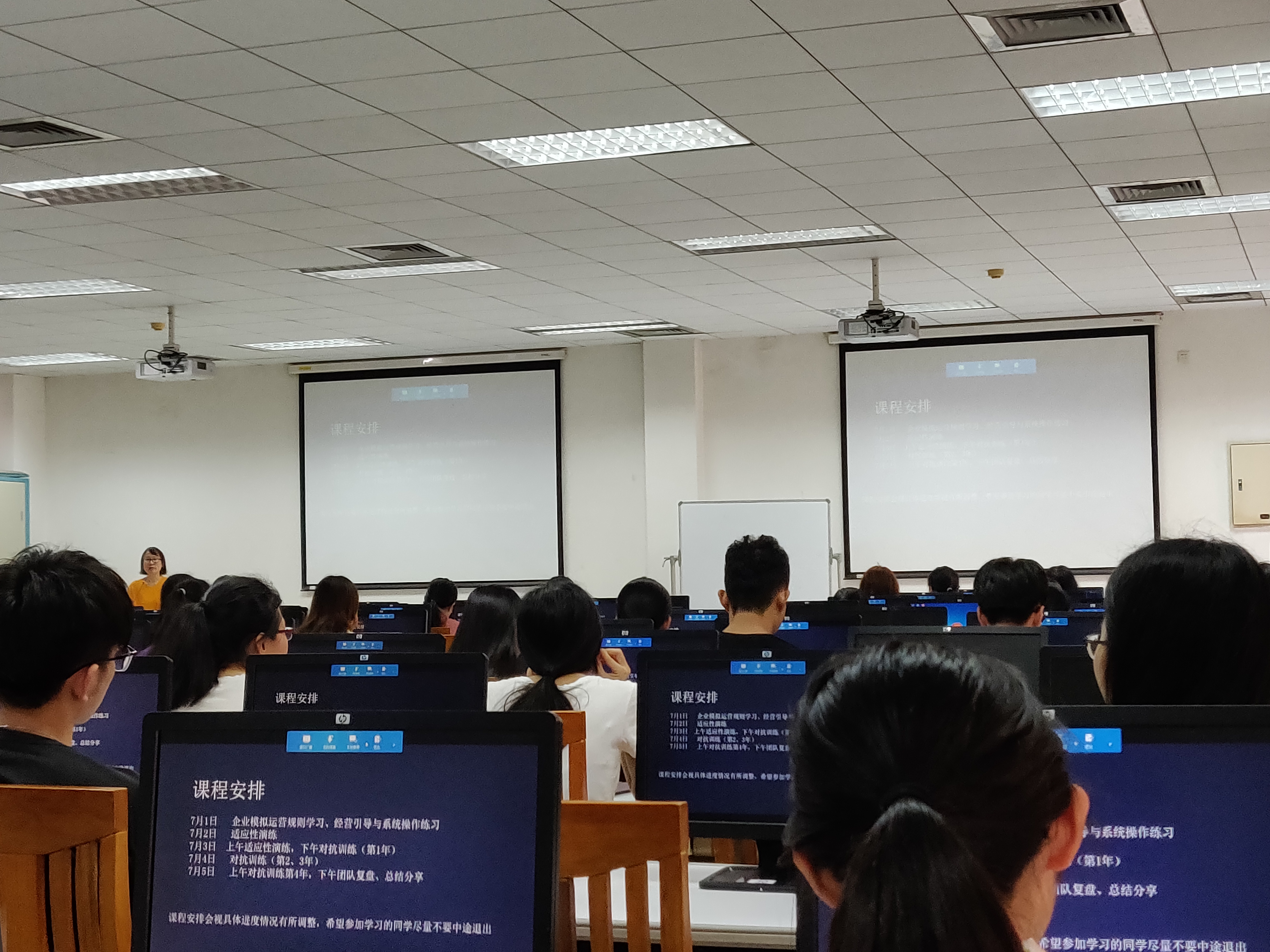 本网讯 7月1日至5日,我校实验教学中心与新道科技股份有限公司合作的实习项目“企业经营校内实习计划”开营仪式分别在我校南校区实验楼B406、北校区二教401举行。南校区约90人,北校区约70人参加培训。