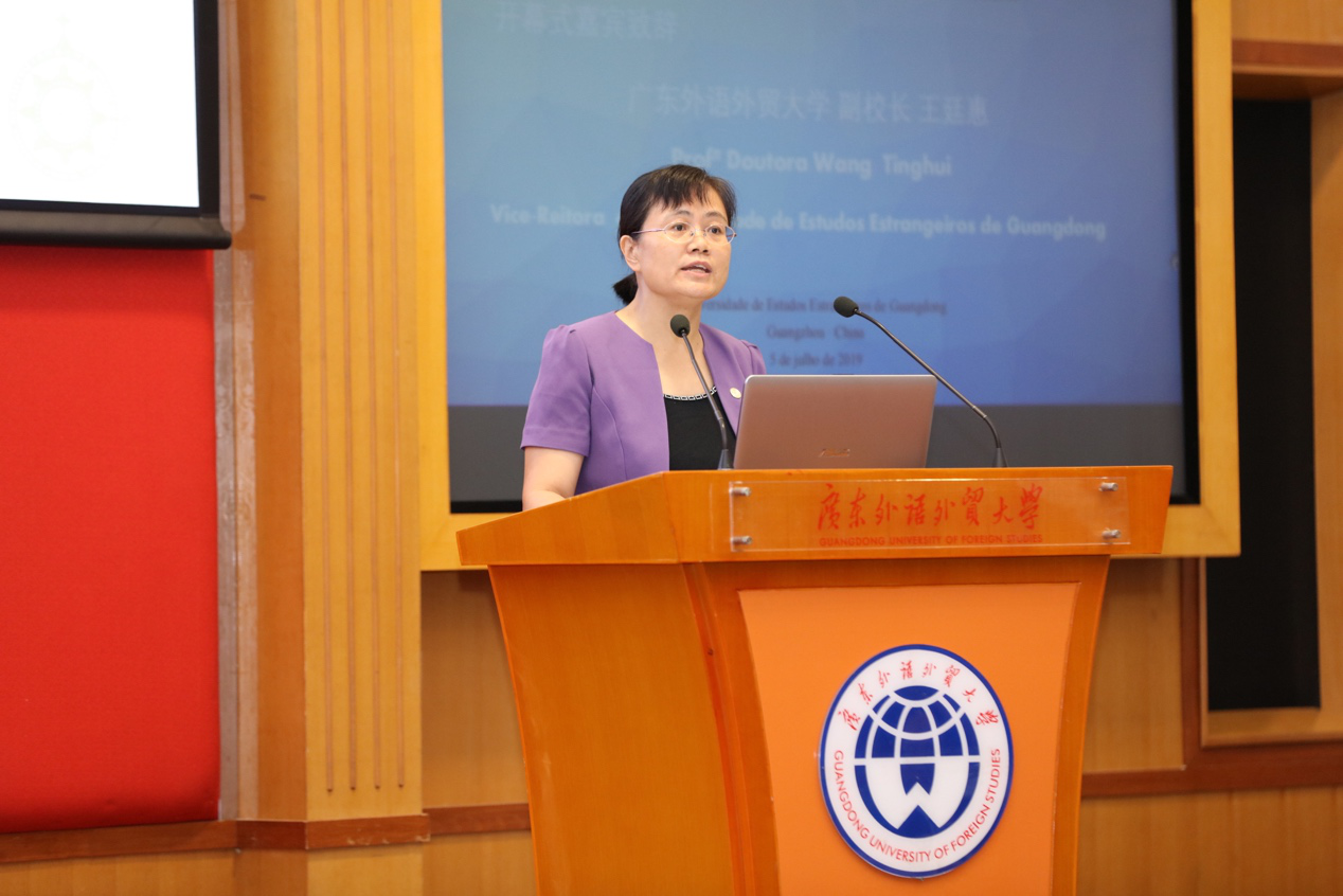 王廷惠在开幕式致辞中首先回顾了广外葡萄牙语专业成立十年来取得的丰硕成果,充分肯定此次论坛“是一次促进合作、协同力量、增进同行友谊的精神盛会”。她指出,“一带一路”倡议的不断推进和粤港澳大湾区建设全面发展对中国的葡萄牙语语言文化研究,特别是葡萄牙语语言对象国研究、中国与葡萄牙语国家关系研究提出了新的要求,期待葡萄牙语学界为中国与葡萄牙语国家交流与合作提供智力支持和人才保障。