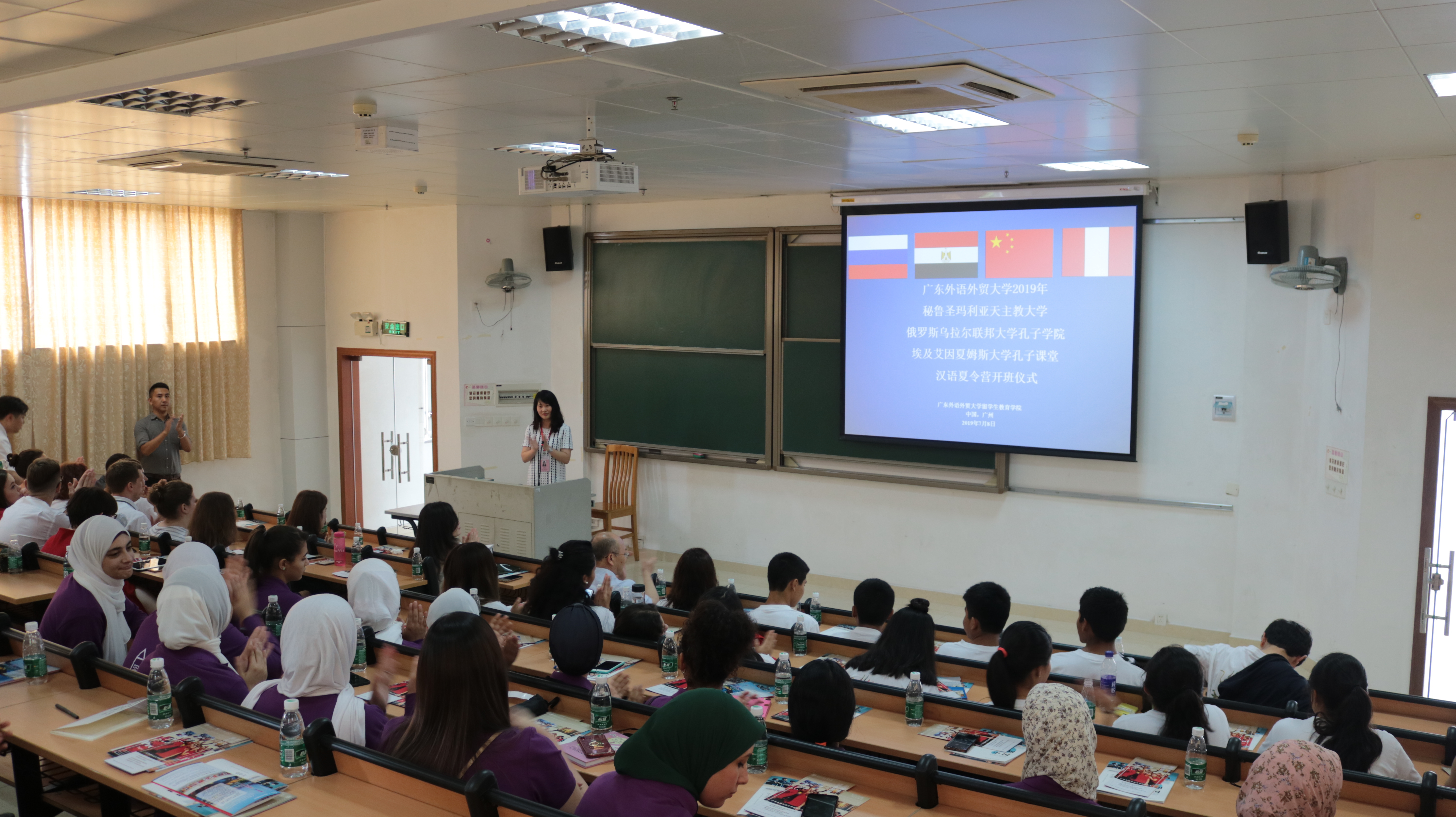 本网讯 7月8日上午,本年度我校秘鲁圣玛利亚天主教大学孔子学院、俄罗斯乌拉尔联邦大学孔子学院、艾因夏姆斯大学孔子课堂汉语夏令营开班仪式在北校第七教学楼314教室举行。我校国际合作与交流处、留学生教育学院,秘鲁孔子学院、俄罗斯孔子学、埃及孔子学院等相关责人出席开班仪式,来自三家孔子学院的50名同学参加了参加仪式。