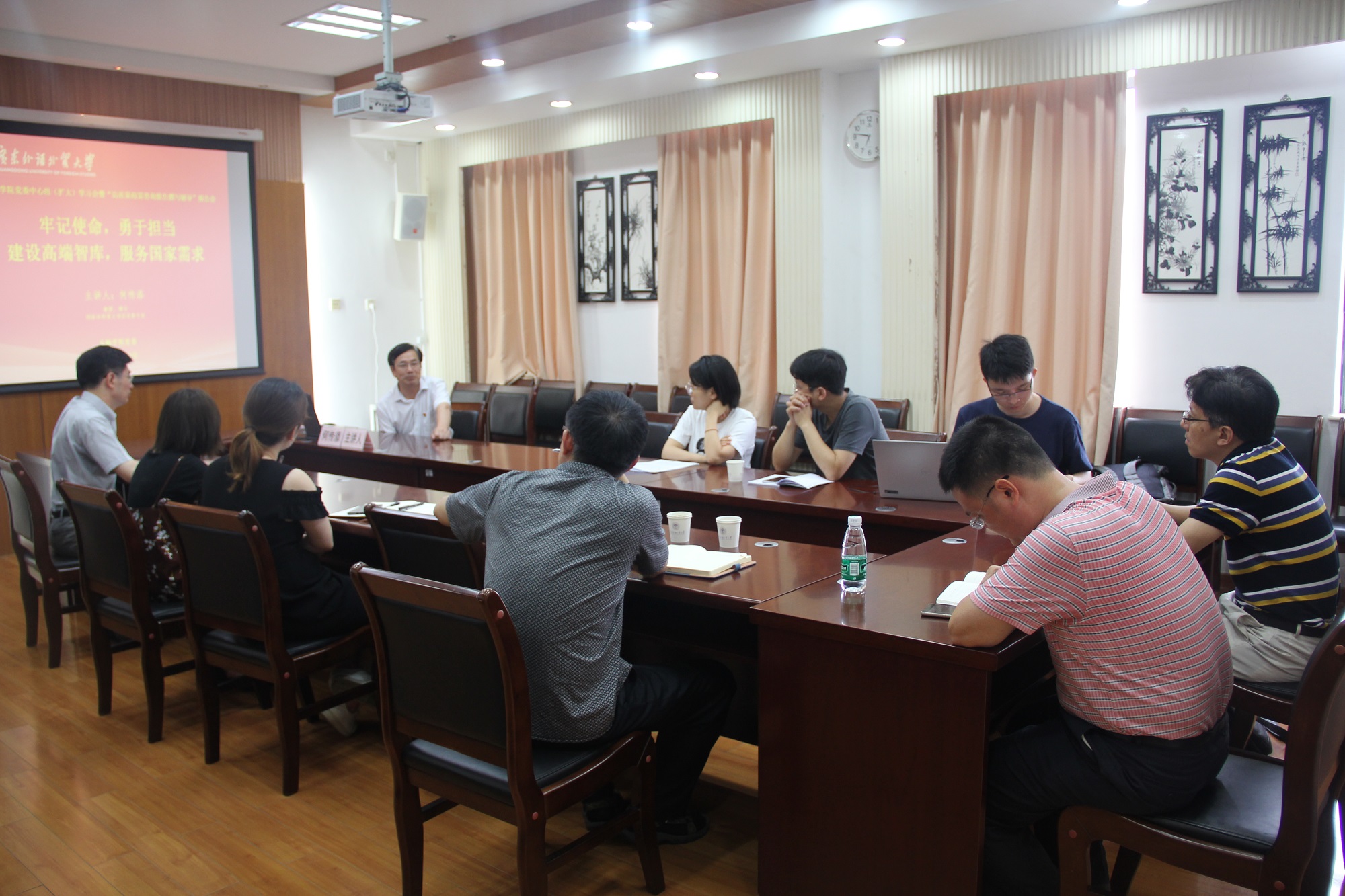 学习会由学院党委书记徐昶斌主持。他提到,党的十八大报告指出,要坚持科学决策、民主决策、依法决策,健全决策机制和程序,发挥思想库的作用,并将中国特色新型智库界定为国家软实力的重要组成部分、党和政府科学民主决策的重要支撑、社会主义民主政治建设和法治建设的重要内容。金融学院拥有一大批高层次人才,他们是智库建设的主力军,金融学院在高端智库建设中理应勇于担当、奋发有为,做出更加积极的贡献。