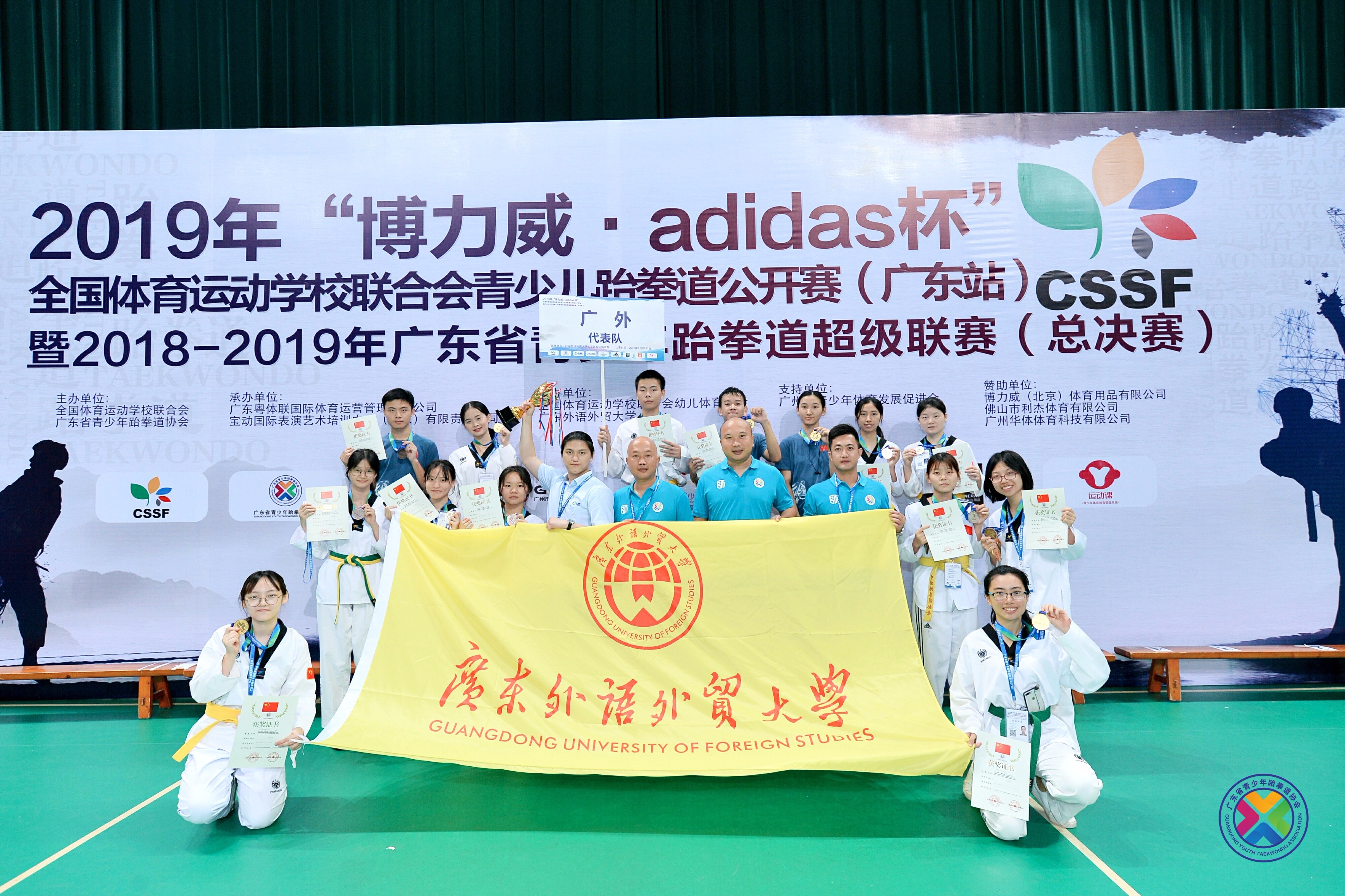 本网讯 8月10至11日,全国体育运动学校联合会青少儿跆拳道公开赛(广东站)暨2018-2019年广东省青少年跆拳道超级联赛(总决赛)在我校南校区体育馆举行。本次活动由全国体育运动学校联合会、广东省青少年跆拳道协会主办,校体育部主任李旭武等率队参赛。经过一天的激烈比拼,我校跆拳道队获得4金4银5铜并取得了竞技组团体总分第三名的好成绩。