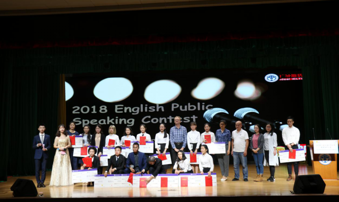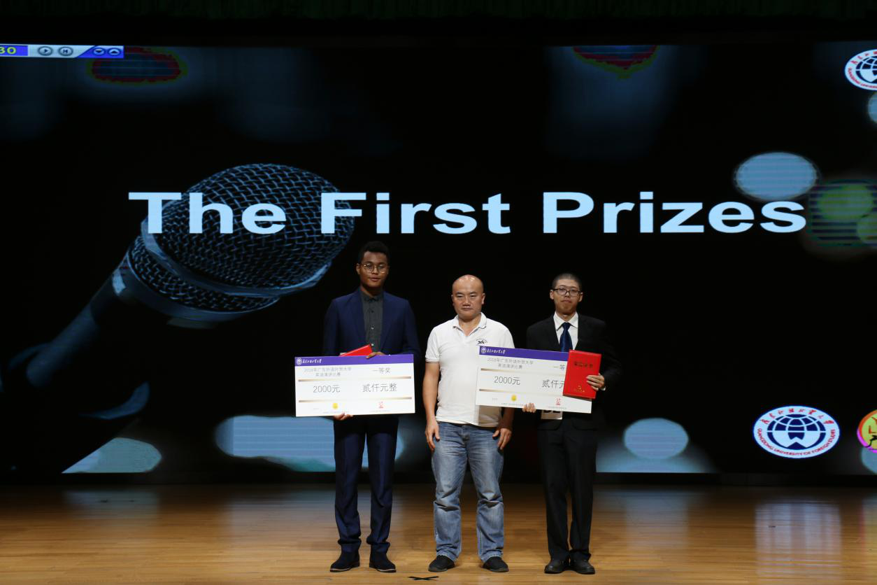本网讯 为提高我校学子的英语演讲水平,形成良好的英语学习氛围,展现我校学子优秀的英语运用能力,并选拔代表我校参加广东省“外研社杯”英语演讲比赛的选手。10月11日,校团委、校学生会在北校区六教报告厅举办了2018年英语演讲比赛校级决赛。经过比赛角逐,商英学院研究生刘东、新闻学院吕丹华同学分别获得专业组及非专业组一等奖,刘东、吕丹华、翻译学院马天祺同学分别获得了最佳演说奖、最佳人气奖和最佳台风奖。
