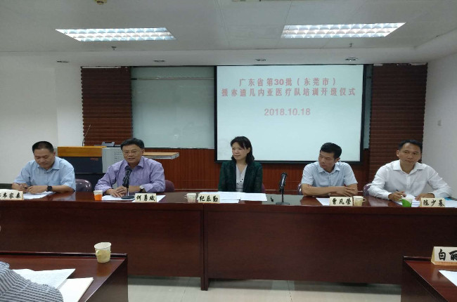 广东省卫生健康委交流合作处处长纪乐勤、省卫生医疗对外合作服务中心主任韦家森、东莞市卫生计生局副调研员曾凡荣、第30批援赤几医疗队队长陈少基以及我校继续教育学院院长何勇斌、团体开发中心主任吴敦龙、继续教育中心主任白丽云等出席了典礼现场,开班典礼由广东省医疗对外合作服务中心主任韦家森主持。