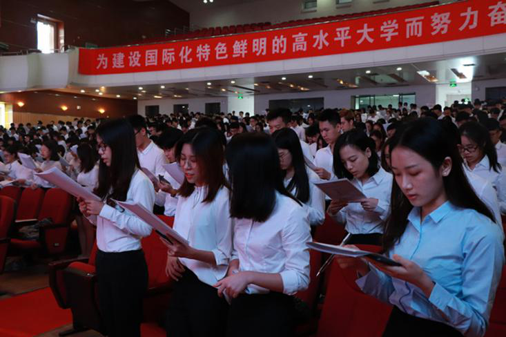 全体实习生宣读了第124届广交会实习上岗承诺书