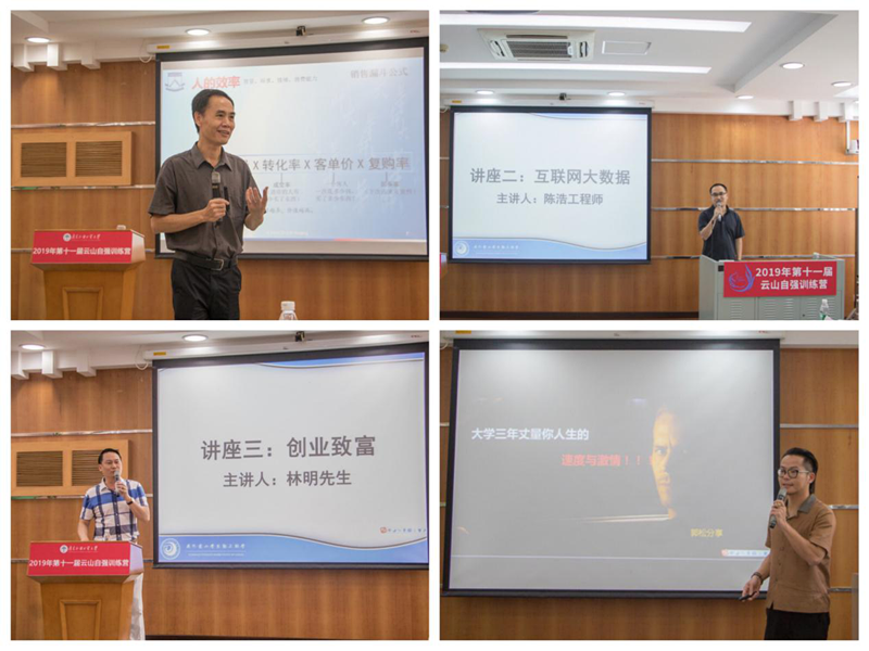 本网讯 8月20日,第十一届云山自强训练营开营仪式在北校区云山丝纺讲堂举行。我校副校长刘海春为训练营授旗。华南师范大学创业学院常务副院长黄楷胤、广外越秀区校友会会长林明、云山勤工校友会执行会长郭松等为在场学生作专题讲座,广外学生勤工助学中心(以下简称“云山勤工”)和自强社全体指导老师及学生干部参加仪式。