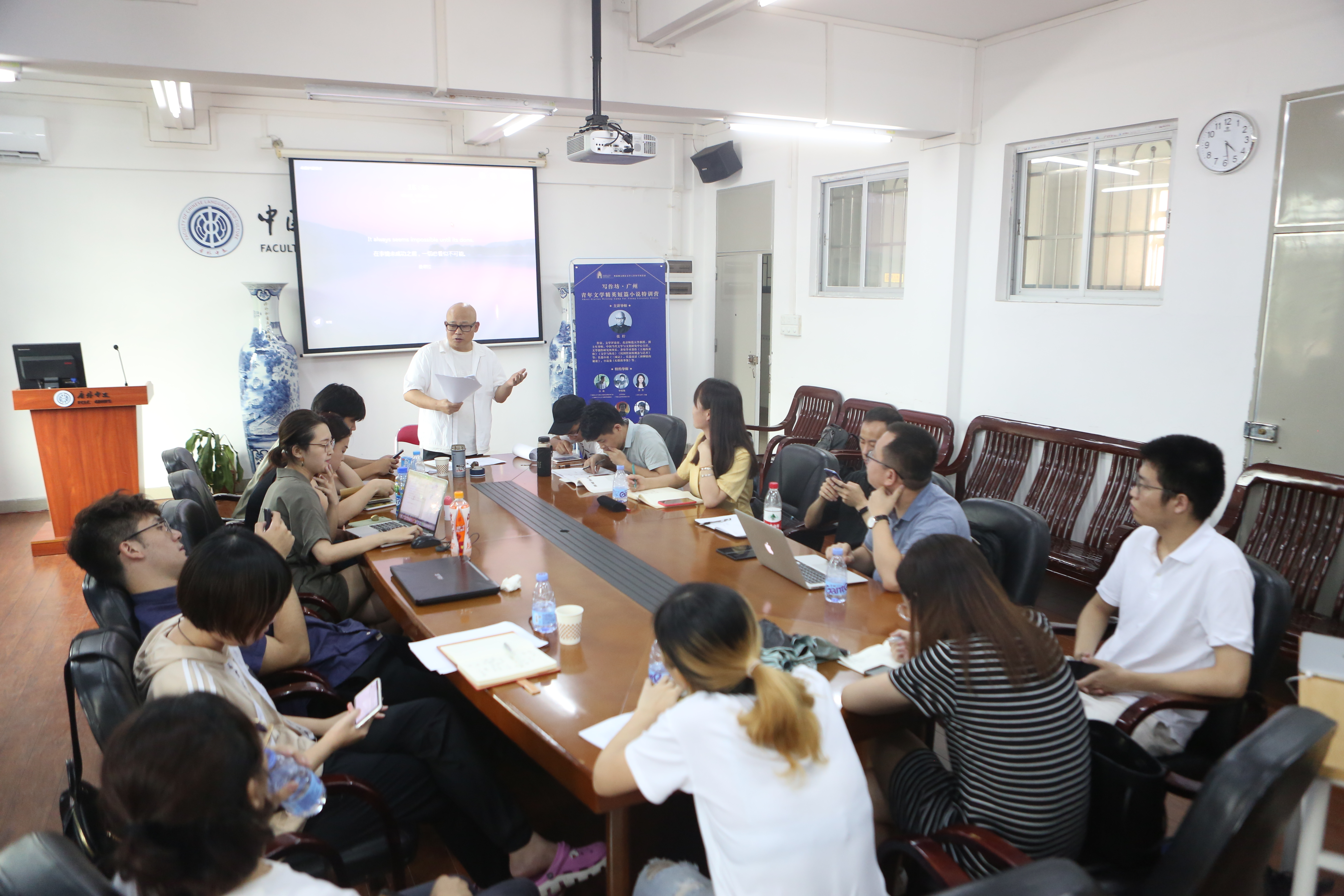 “写作坊·广州”青年文学精英短篇小说特训营聘请了北师大文学院教授、北师大中国当代文学与文化研究中心主任、著名作家张柠担任主讲导师,市评协主席申霞艳、广外创意写作中心主任刘海玲、广州都市文学与都市文化研究基地首席专家江冰、《青年文学》主编张菁、作家蒲荔子等名家担任特约导师。从7月开始,特训营便以择优选拔的方式,面向粤港澳大湾区招生。此次培训内容包括名家授课、写作探讨、学员作品点评、创作采风等,优秀作品将由主办方推荐,在重量级专业文学期刊发表。