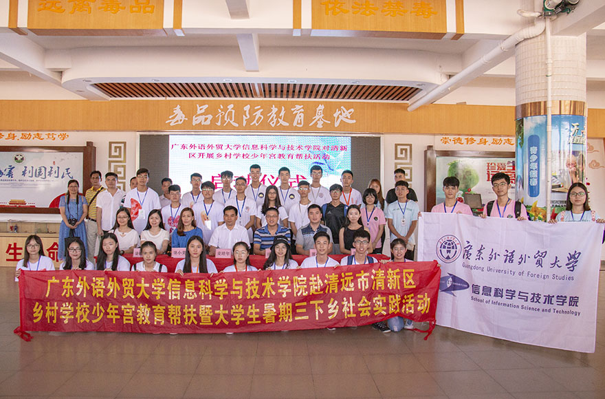 本网讯 7月10日,信息学院赴清远市清新区乡村学校少年宫教育帮扶暨大学生暑期三下乡社会实践活动在清新区何黄玉湘中学举办了开营仪式。由信息学院组织的235名优秀大学生共组成9个志愿服务队,以清新区9个乡村学校少年宫为基地,为1300多名乡村中小学生举办“留守儿童”暑期夏令营,开展乡村教师计算机教学应用能力提升培训,发挥学院专业优势和大学的优质教育资源,以此开展2018年精准教育帮扶活动,提升乡村中小学教师信息技术应用的能力,帮助做好乡村留守儿童教育工作。
