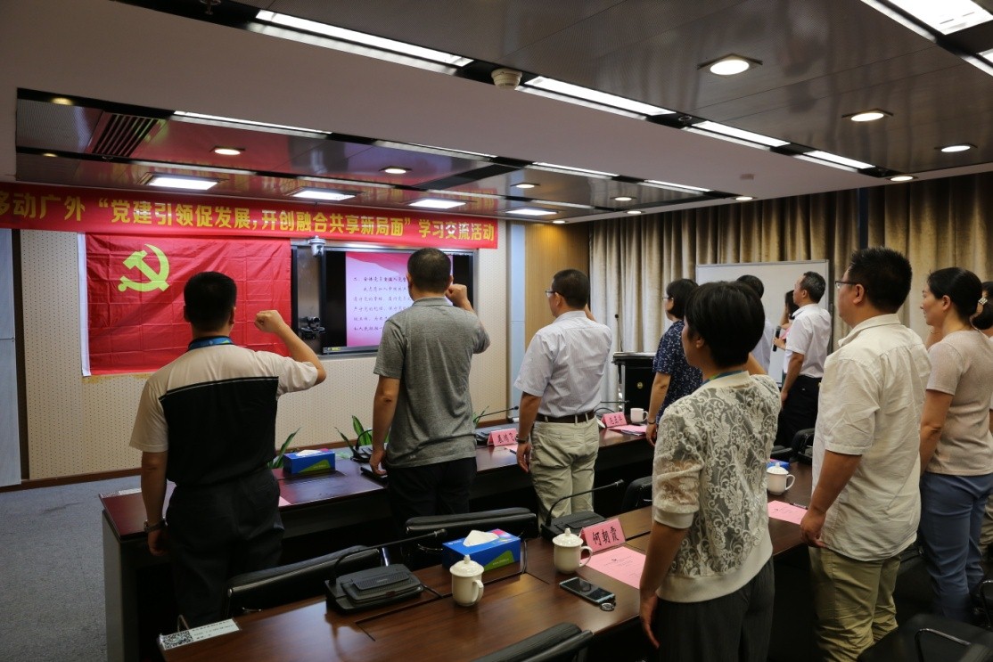 我校教育技术中心党总支部书记范正华结合实际,介绍了中心党总支部认真学习贯彻习近平新时代中国特色社会主义思想和党的十九大精神,学习贯彻习近平总书记重要讲话精神,进一步加强政治、思想、组织、制度、作风、纪律建设等方面的情况及取得的成效。广州移动白云分公司党支部书记裘飞鸿从班子建设、落实责任、作风建设、党建生产融合等方面介绍白云分公司党支部党建工作。双方在交流党建工作之后,全体党员同志重温入党誓词,坚定理想信念,不忘初心、牢记使命,勇于担当、真抓实干推进各项工作。