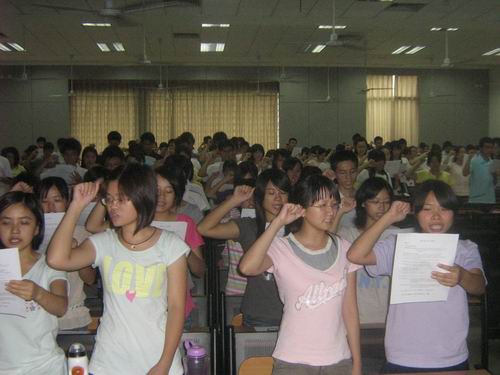 2008-11-06 自强社新社员大会:“自强感恩 拥抱未来”本网讯 10月30日下午,广外大自强社在南校区E204举行主题为“自强感恩 拥抱未来”的新社员大会,来自经贸、新闻等9个学院的200多名受助新生首次齐聚一堂,正… [详细]