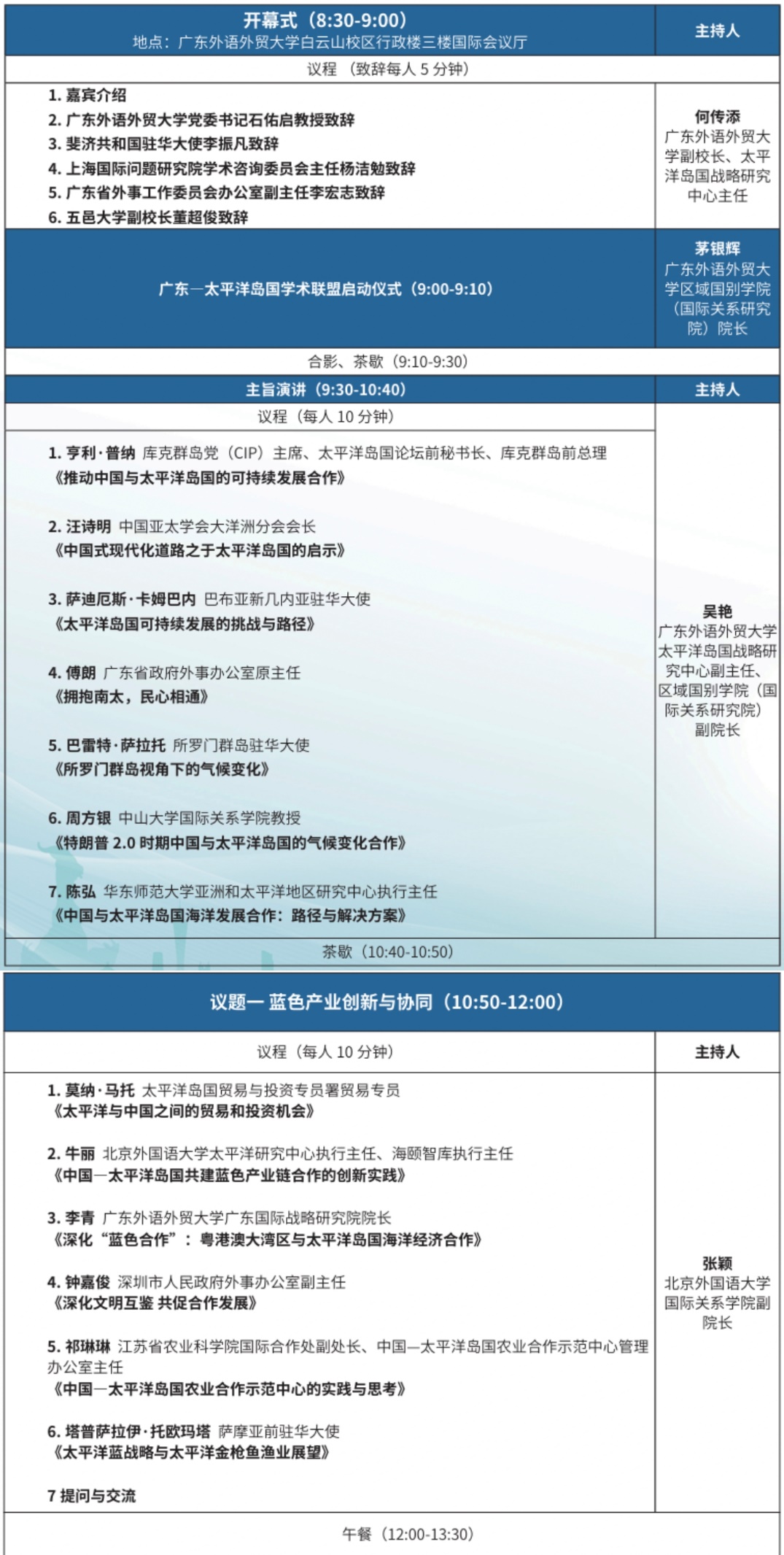 同时,在广东省委、省政府的鼎力支持与省委宣传部的悉心指导下,广东外语外贸大学联合太平洋岛国高校、粤港澳大湾区高校及智库共同筹建“广东—太平洋岛国学术联盟”,旨在搭建中国—太平洋学术交流的坚实平台,为构建“中国—太平洋岛国命运共同体”筑牢学术根基、凝聚前行力量。