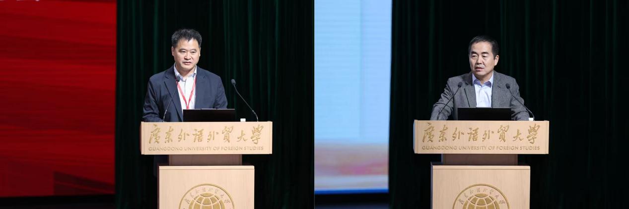 房国铮主持(左)与黎跃进做主旨报告(右)