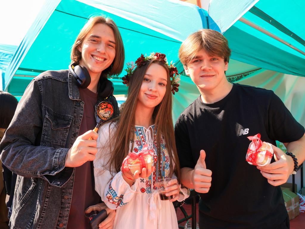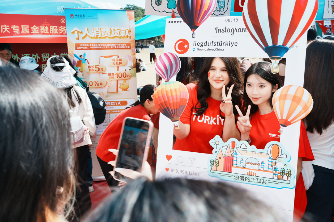 2017级亚非语言学院校友谢漫淇正与同行的伙伴分享来自日本的玉子仙贝,并不时停下脚步拍照留念。毕业多年,这是她首次重返母校参加世界文化节。“今年的活动规模比以往更大,校园也变得更美了!”她欣喜地说。