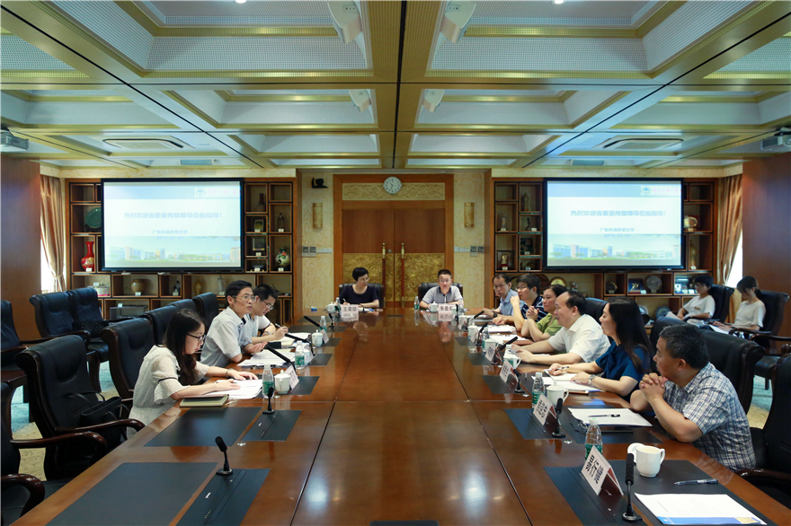 阳爱民介绍了我校办学特色和智库建设情况。他表示,我校多年来注重发挥特色和优势,围绕国家重大需求,立足广东对外开放和经济发展的实际,科研实力显著提升。在新型高端智库建设领域积极发出“广外声音”,社会影响力持续扩大。阳爱民指出,目前国家正在大力倡导新文科建设,希望省委省政府在开展高水平大学建设过程中,充分重视并发挥文科院校的积极作用。