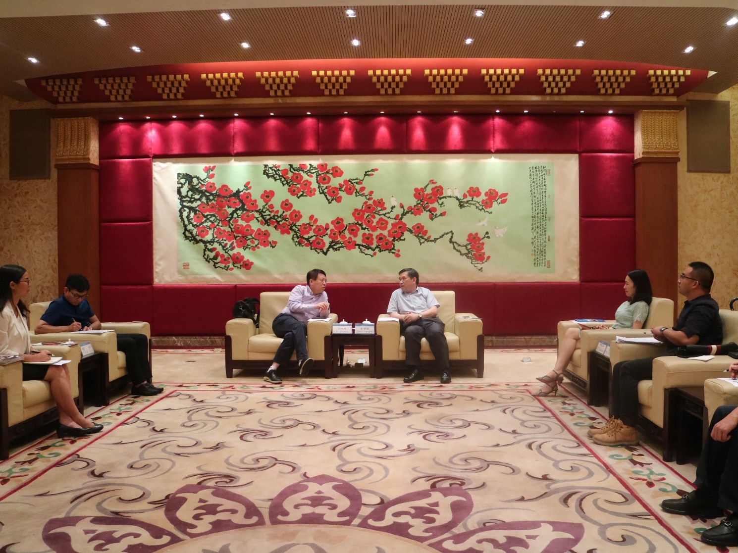 隋广军对刘照惠一行的来访表示欢迎,并就学校历史、学科建设、科学研究等方面简要介绍学校情况。隋广军表示,我校多年来注重发挥特色和优势,培养了大批优秀人才,承接国家重大项目的能力持续提升;并积极响应国家“建设新时代中国特色社会主义话语体系”的现实需求,建设“当代中国”系列全英教学课程。他希望双方密切合作,加深交流,拓展更广阔的合作领域。