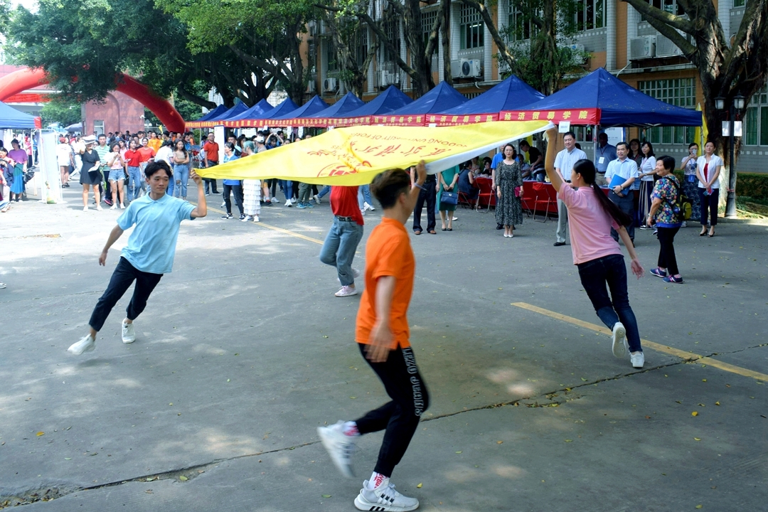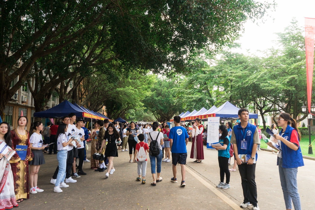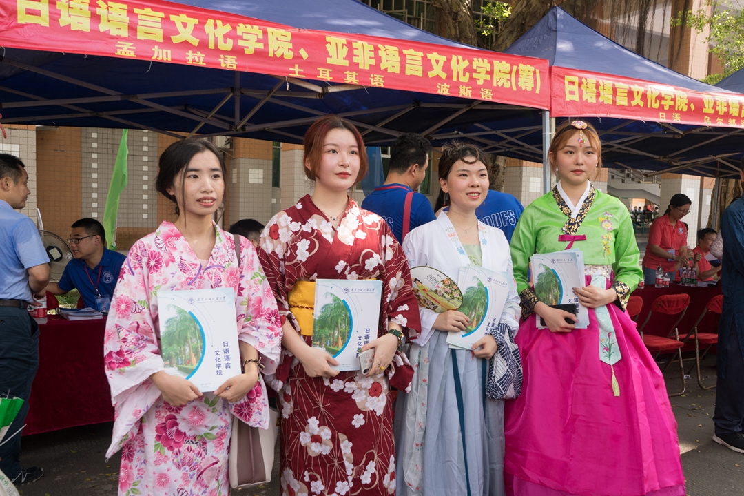 各学院用别出心裁的方式吸引学生和家长前来咨询。特别值得一提的是,艺术学院组织了一场别开生面的“快闪”歌舞秀,学子们跳着激情欢快的舞步,师生合唱着《我和我的祖国》,将大学开放日活动推上高潮,点燃前来参加活动的师生和考生家长的爱国热情。中国语言文化学院学生身穿美丽的汉服,用曼妙的舞姿淋漓尽致地展现中国文化的博大精深。新闻与传播学院以直播的方式对考生进行采访,与专业密切的结合的展示给学生与家长留下了深刻的印象。小语种专业的学生们身着各自专业对应的国家的特色服饰,以端庄的韩服与和服、柬埔寨雅致的水布、塞尔维亚斯拉夫田园装扮等迎接考生家长。