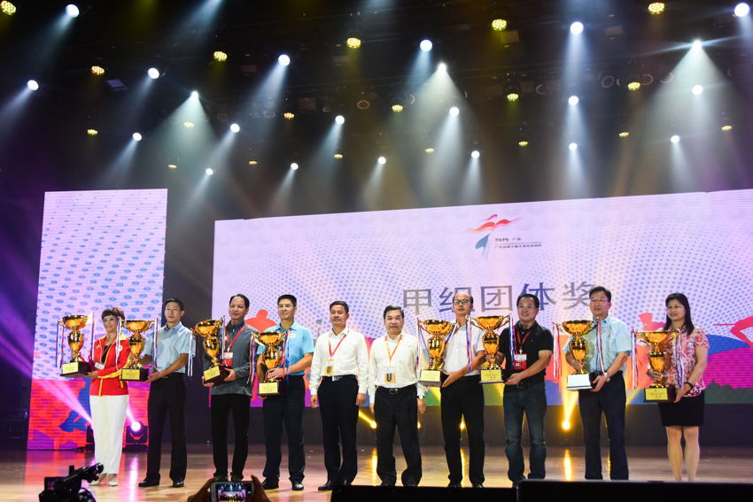 省教育厅体卫艺处处长、大运会组委会秘书长陈健生宣读获奖名单。我校以总分622分取得甲组团体一等奖佳绩。我校与中大、华工、华农等13所高校获优秀赛区奖,另有包括我校在内的133所参赛高校获道德风尚奖。