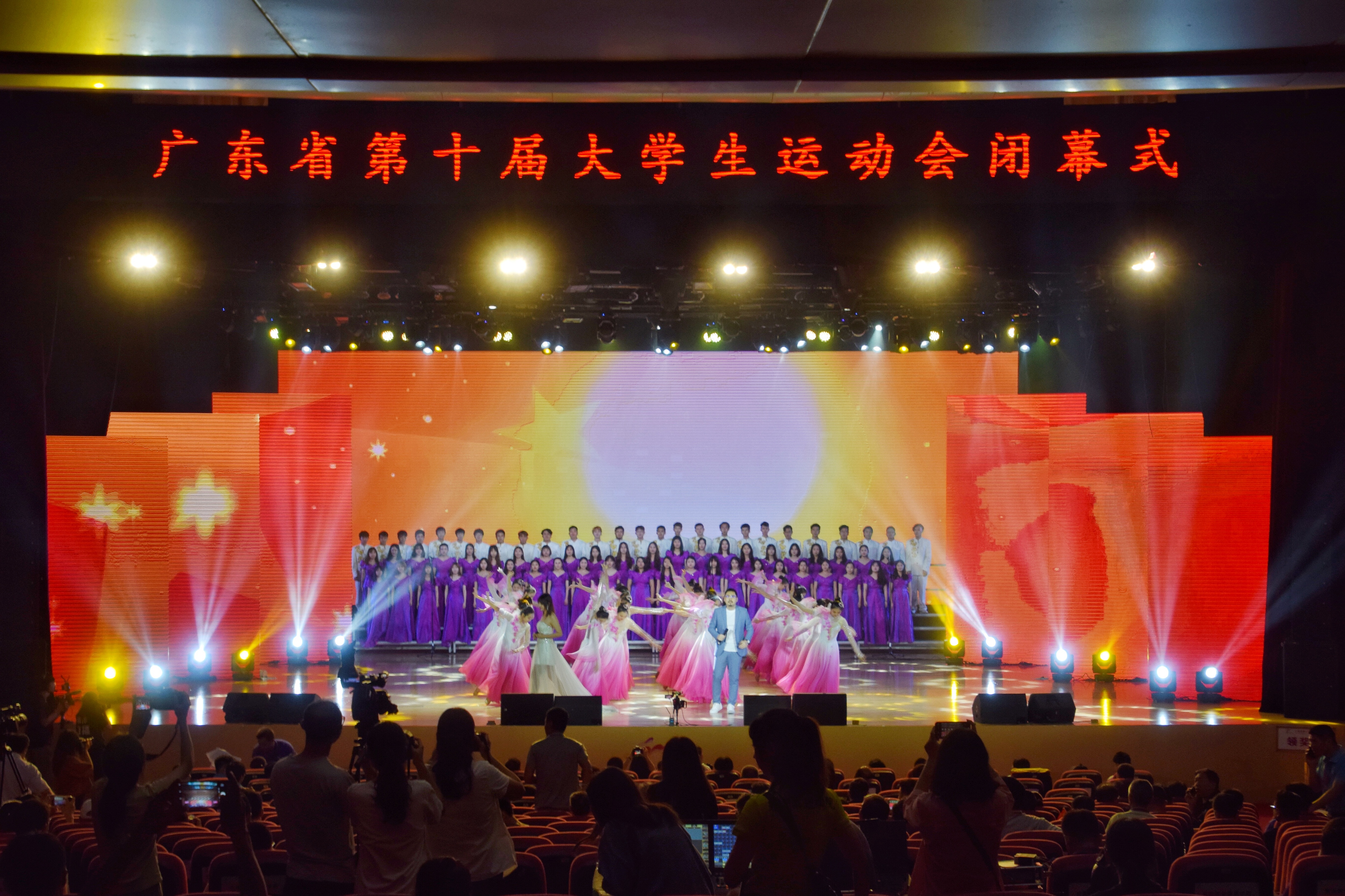 本网讯 5月31日下午,为期26天的广东省第十届大学生运动会在我校南校区大会堂落下帷幕。本届比赛中,我校健儿共斩获9金7银9铜,以总分622分获甲组第四名,创我校大运会历史最好成绩。我校还获评优秀赛区和道德风尚奖。省教育厅副巡视员、大运会组委会副主任邱克楠致辞并宣布本届大运会闭幕。下一届广东省大运会将在华南理工大学举行。