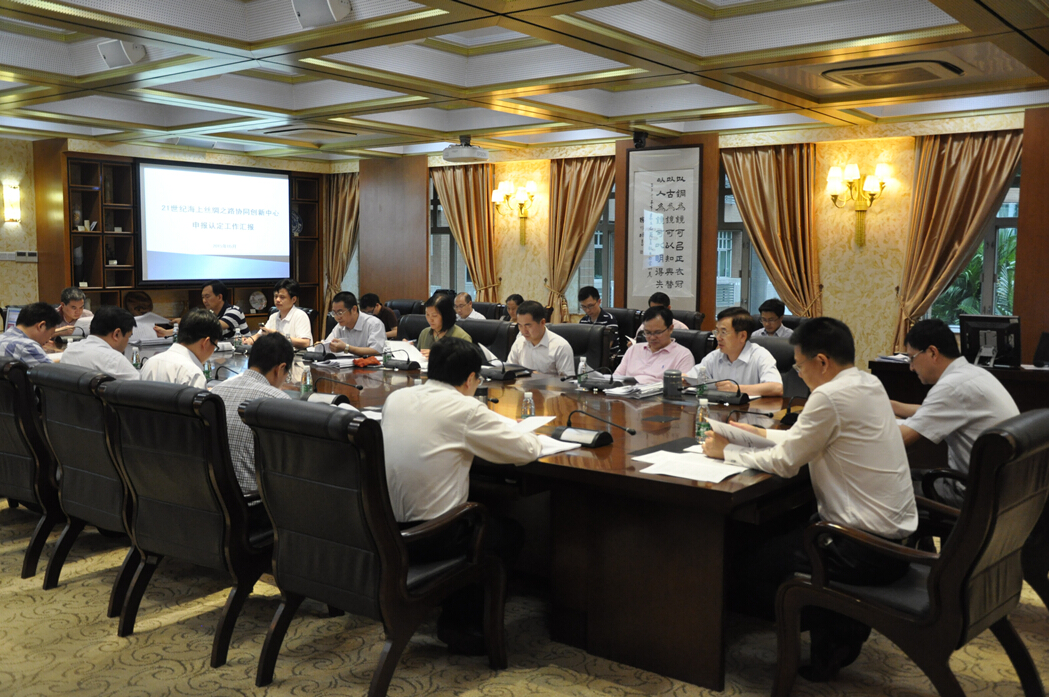 本网讯 5月20日,21世纪海上丝绸之路协同创新中心(以下简称“中心”)国家级协同创新中心申报认定工作推进会在我校召开。校党委书记隋广军,校长仲伟合,副校长刘建达、石佑启、何传添,学校“2011计划”领导小组成员、中心管理委员会委员及各相关学院负责人等出席会议。会议由何传添主持。